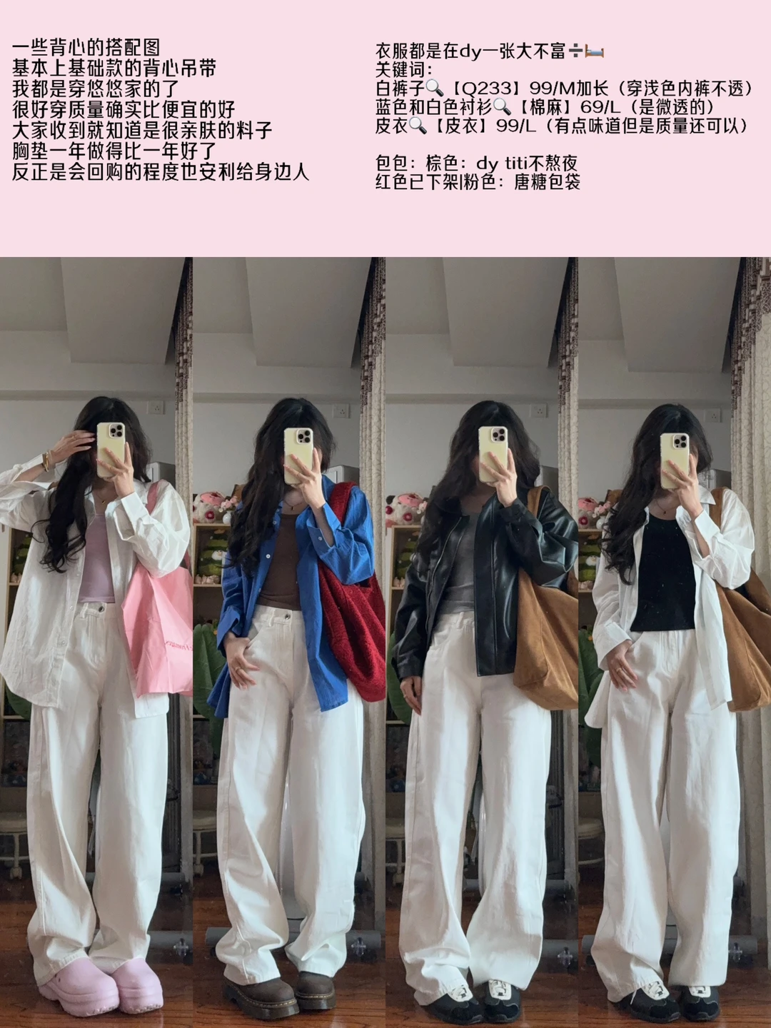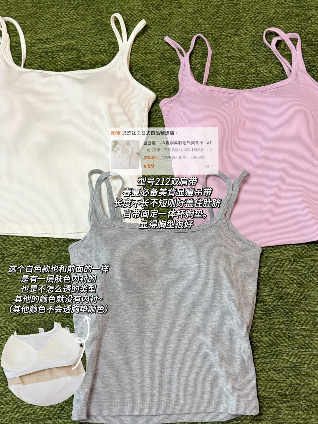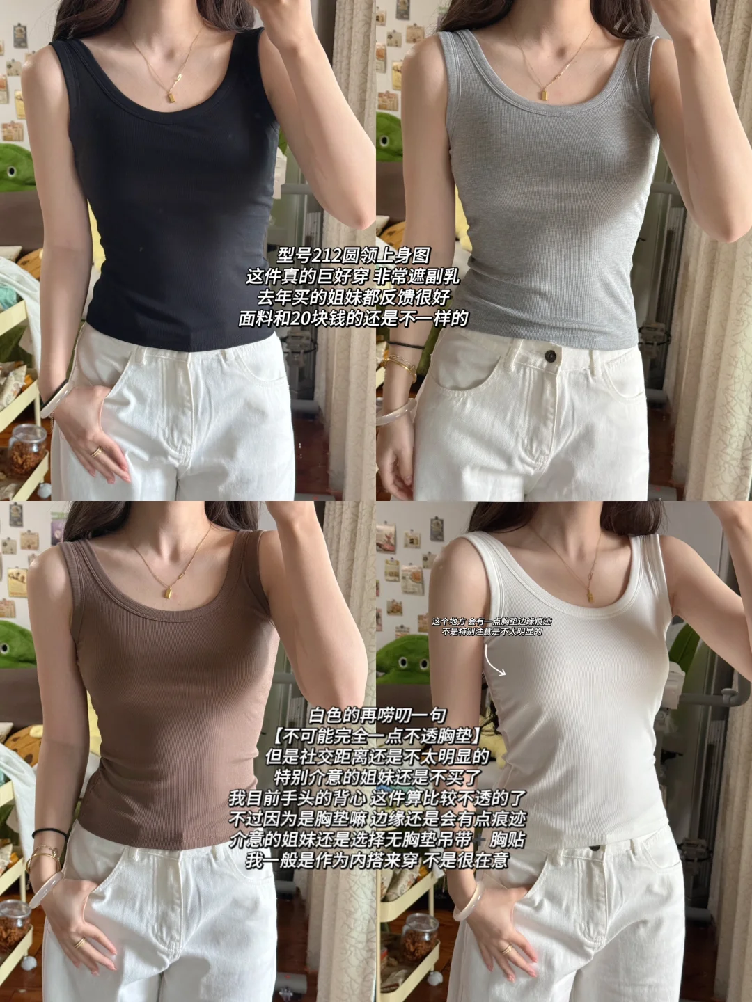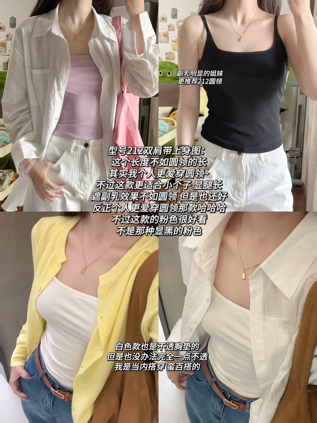 168/107左右 我来了 大家蹲的吊带背心合集~ 基础款的基本上也是之前发过的那些 也是我自己穿了很多次的 很爱穿! 一些花里胡哨的我后续买了新的再分享[自拍R] 白色不透胸垫的背心吊带比较难得 但是如果是社交距离 还是比较隐性的 太在意透不透胸垫的姐妹 可以穿不带胸垫的背心➕胸贴 这样更隐形一些