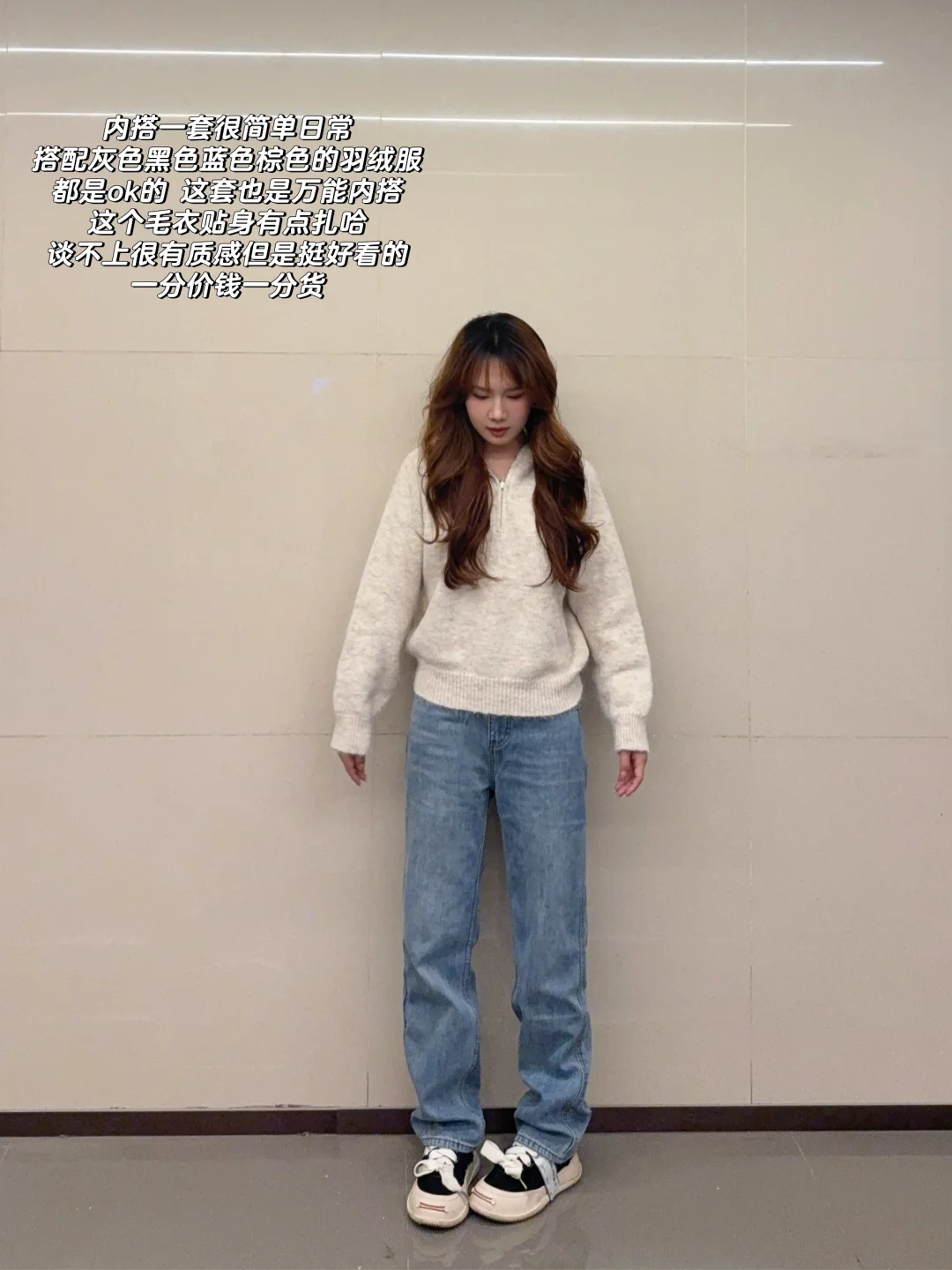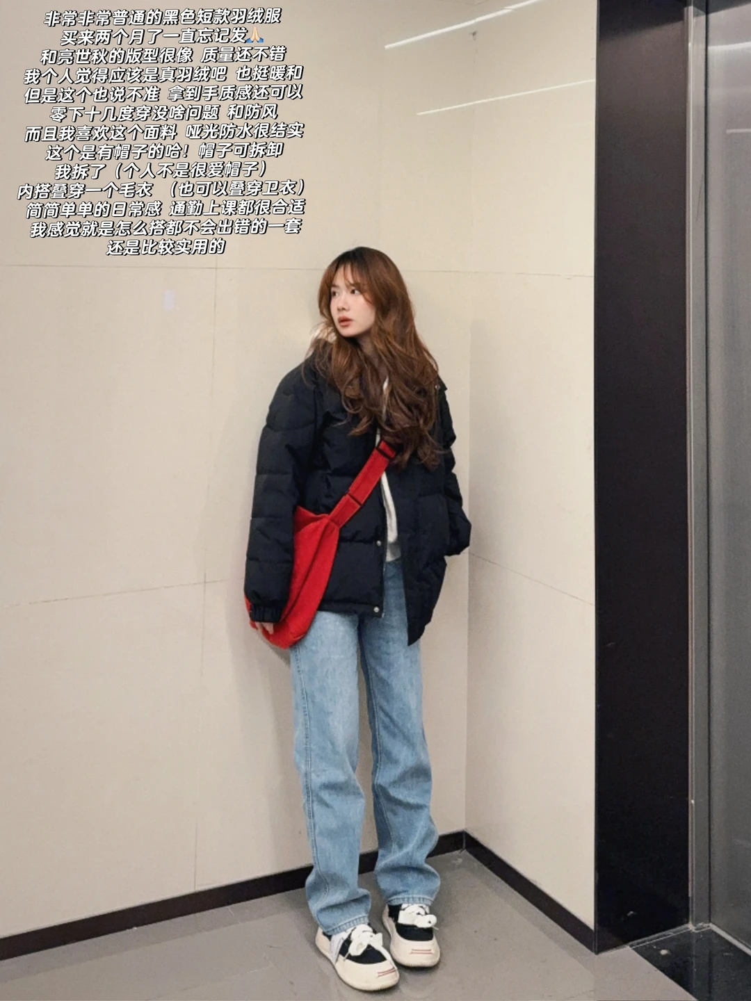 168/106左右 【纯分享🈚guang 理性种草】 没什么搭配思路的一套衣服哈哈随便发发 但是我日常也基本上是这样 耐脏又耐看 感觉穿到五十岁 也不会过时 黑羽绒服➕窄版蓝色牛仔裤➕厚底鞋(其实匡威好像更典型一些哈哈哈)真的有种古早时尚感哈哈 单品的利用率也非常高 黑色羽绒服随便搭配黑白灰或者亮色的内搭都很好看 牛仔裤搭配别的羽绒服也是可以的 内搭毛衣颜色也很百搭耐看 素颜穿也好看 不打扮也好看 总之 平平无奇 但是很安心的一套衣服~