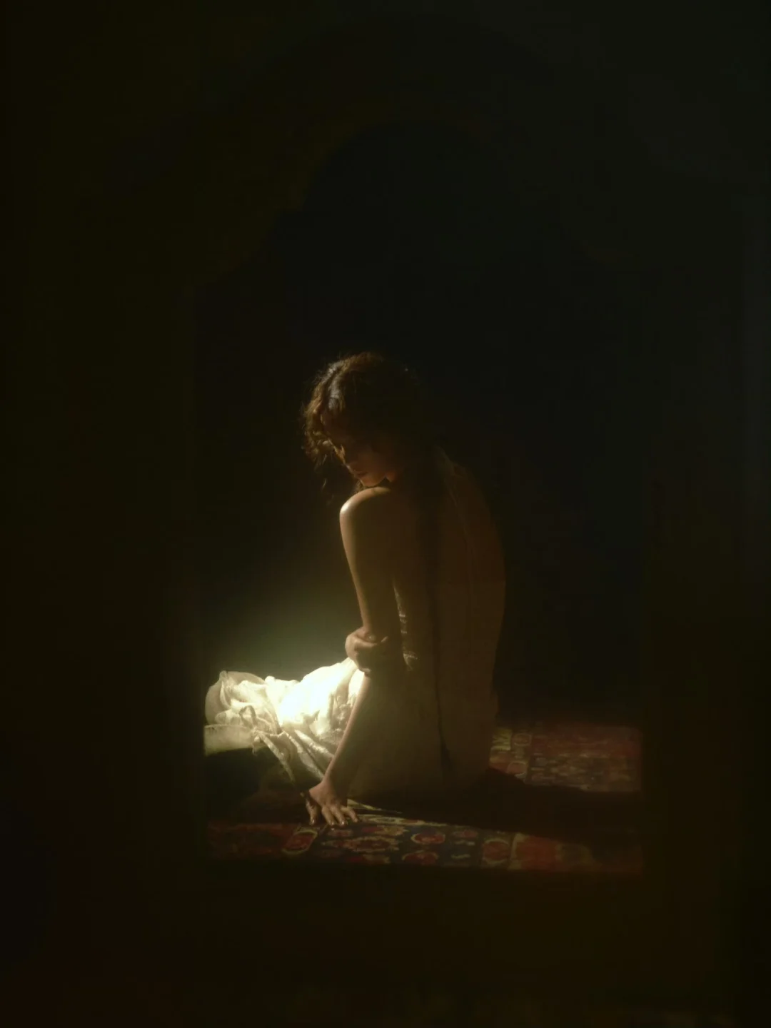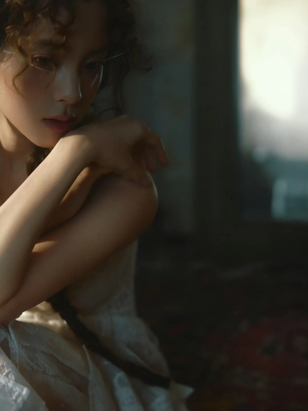 都说摄影是光的艺术。这组照片,哦不,这组艺术创作,正是对这句话的完美诠释。在这里,光不再是照明工具,而是情绪的载体和叙事的语言。这组作品运用了伦勃朗光、轮廓光、局部束光等布光技法,为每一个画面注入独特的情绪内核。比如第7张和第9张,用了局部束光打亮眼部区域,背景压暗,这样焦点聚焦在眼神,既强化了情绪的流露,又隐喻着微光照进生活。再比如第6张,人物被框在一束光里,就像救赎的圣光。再比如第3、4张,强烈的明暗对比不仅清晰勾勒出轮廓,更渲染出压抑而疏离的氛围,光影自身已成为情感的表达者。