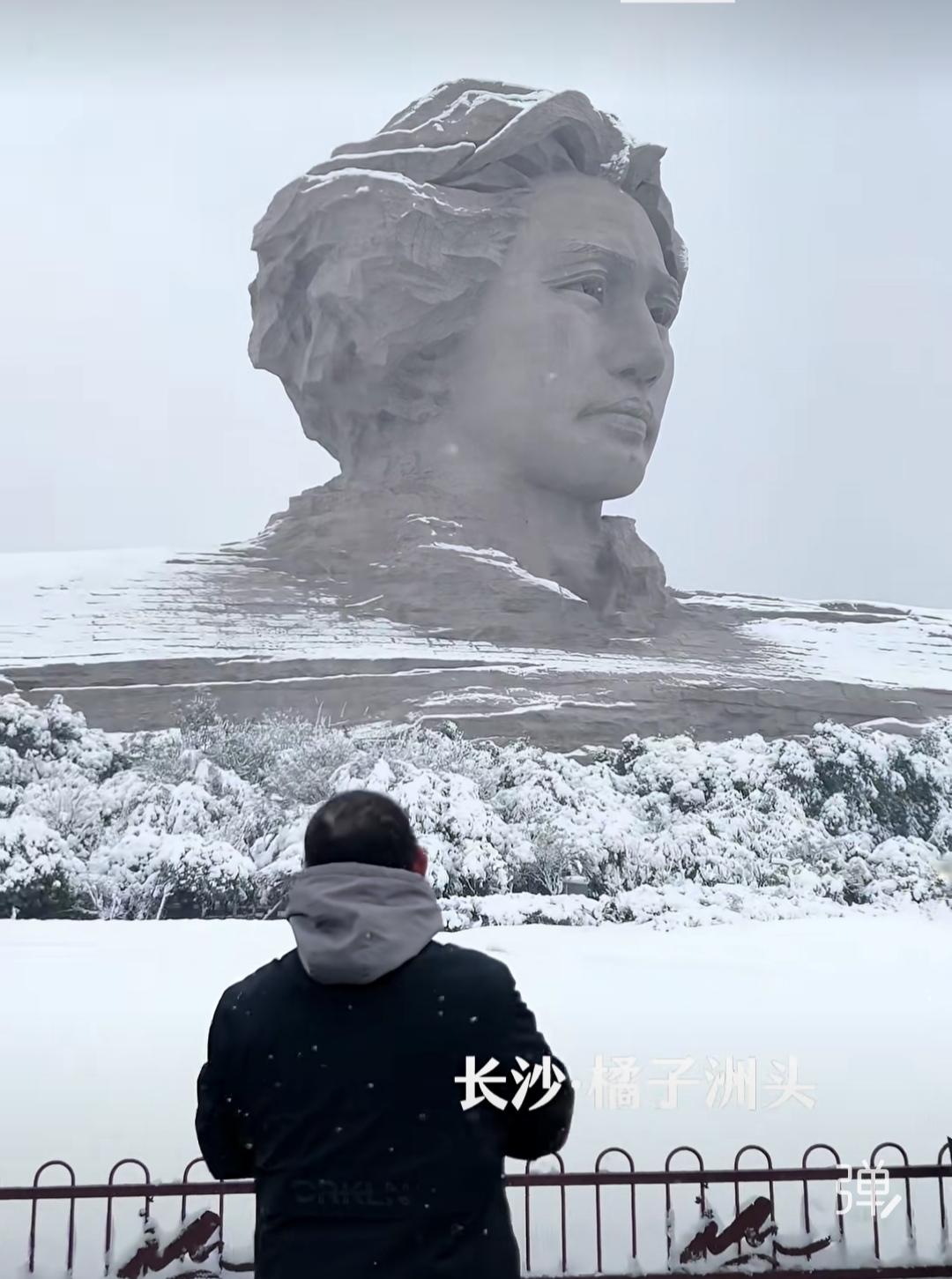 雪中的毛主席显得格外雄伟壮观!