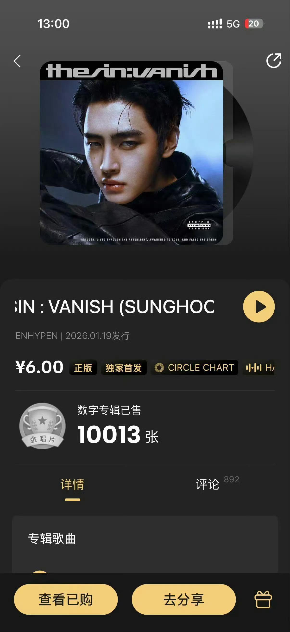 朴成训单人专辑空降首日成绩朴成训【单人版专辑】空降首日成绩💥Spotify播放