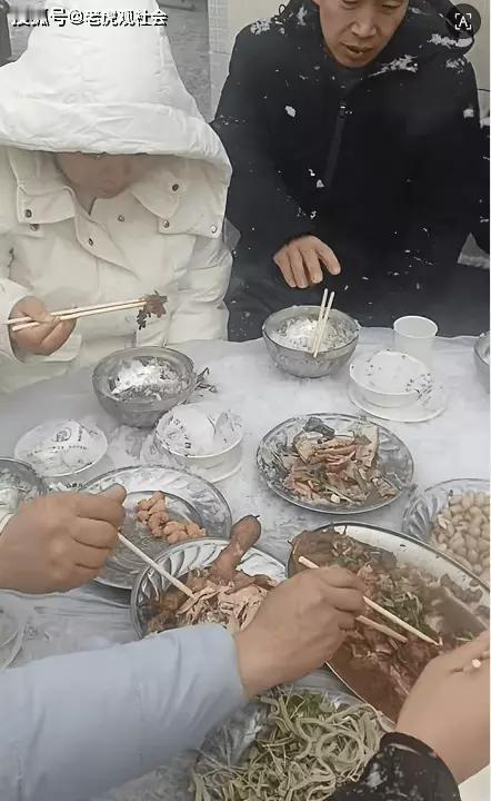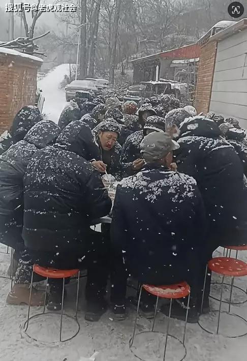 大开眼界,寒冬腊月里吃席顶雪,这场景想想都带感!在我老家,哪怕是大雪纷飞,吃席的