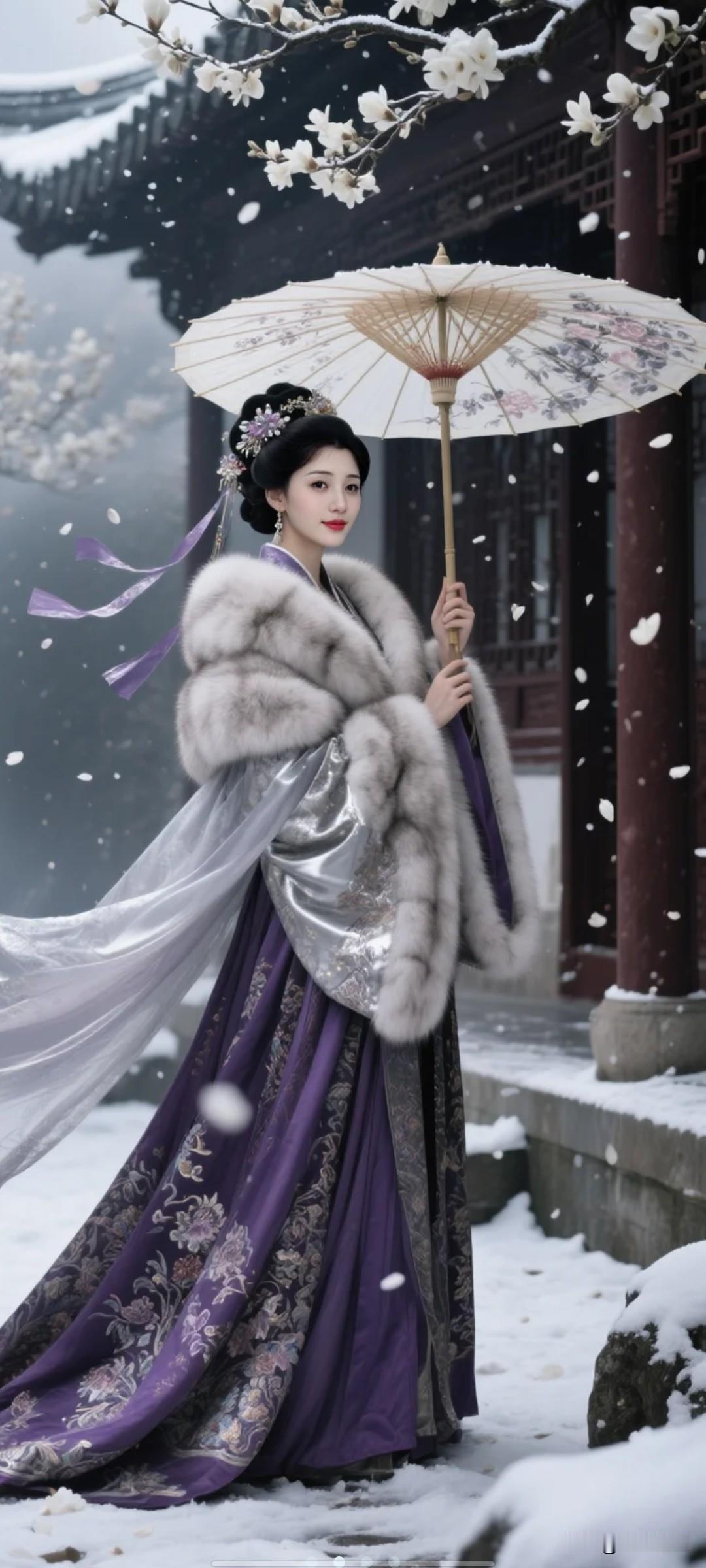古典之美,雪中漫步,飘飘欲仙。