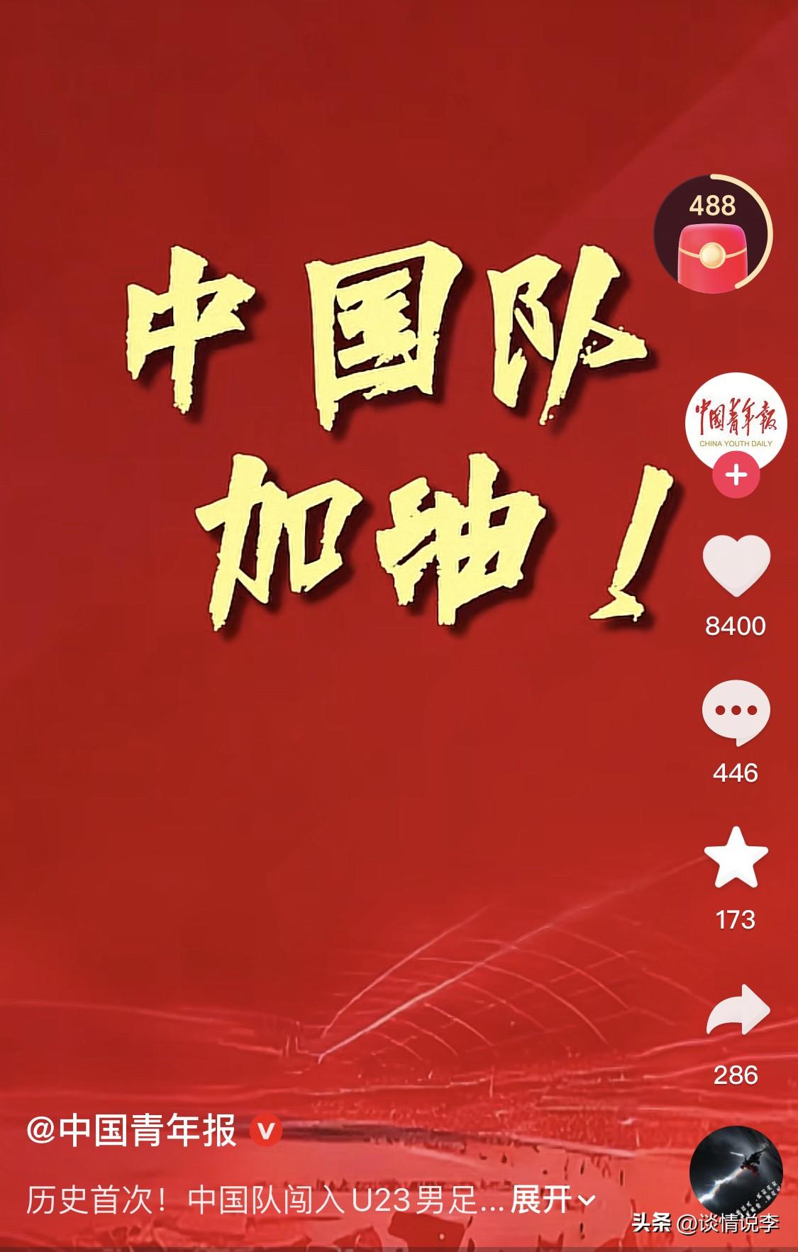 天哪!天哪!天哪! 计划有变! 刷屏了!中国队3:0击败越南队闯入U23男足亚洲杯决赛! 这个消息令人无比振奋!北京时间1月24日晚,中国队将与日本队争夺本届U23亚洲杯冠军! 不懂就查了一下,U23就是全体足球运动员都是23岁以下!他们年轻,有活力,有朝气,没有啤酒肚,不用吃海参! 之前国足打完小组赛就去火车站,现在计划有变,准备夺冠了!不管是不是球迷,看到这个消息都全体振奋。24号准备横扫富士山!西安啊,绝对是个福地,我们迷人的老祖宗庇佑着这片神奇土地上的每一个中国人,但行好事莫问前程! 刷视频刷得人激动不已呀!李昊面对镜头又狂发电报,滴滴滴滴滴滴滴滴滴滴滴滴,人民日报只能消音了,年轻人,狂点没关系!期待24号!