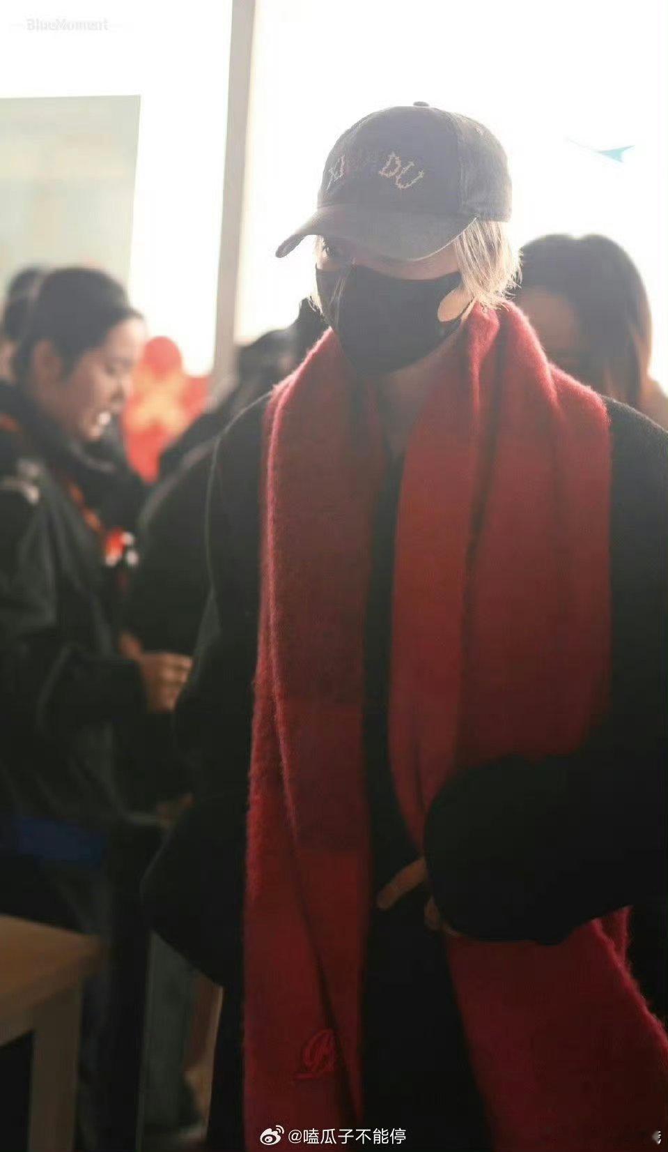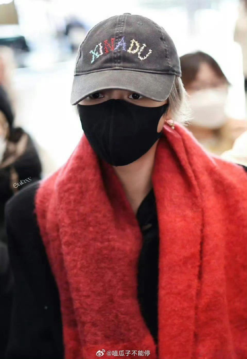 刘雨昕出发央视晚会录制路透,太喜庆了 红色围巾