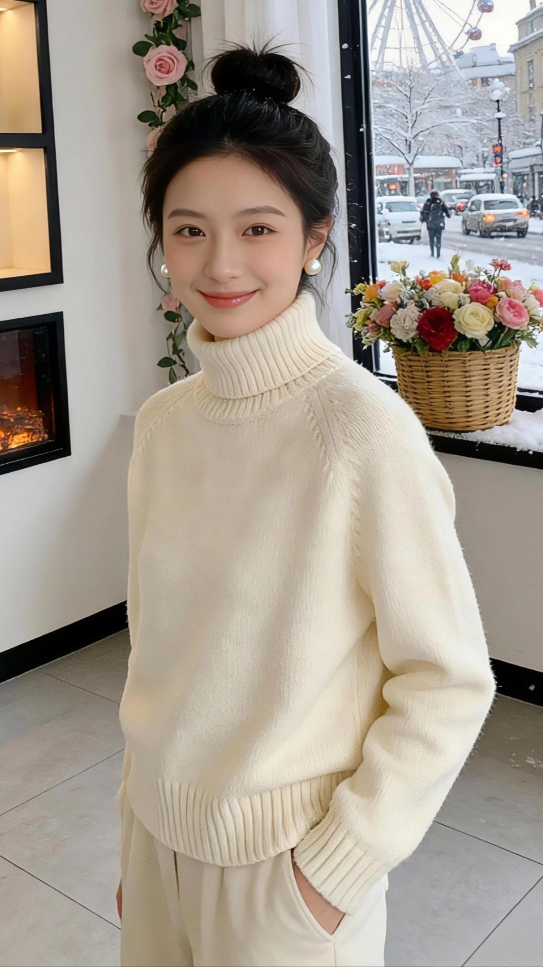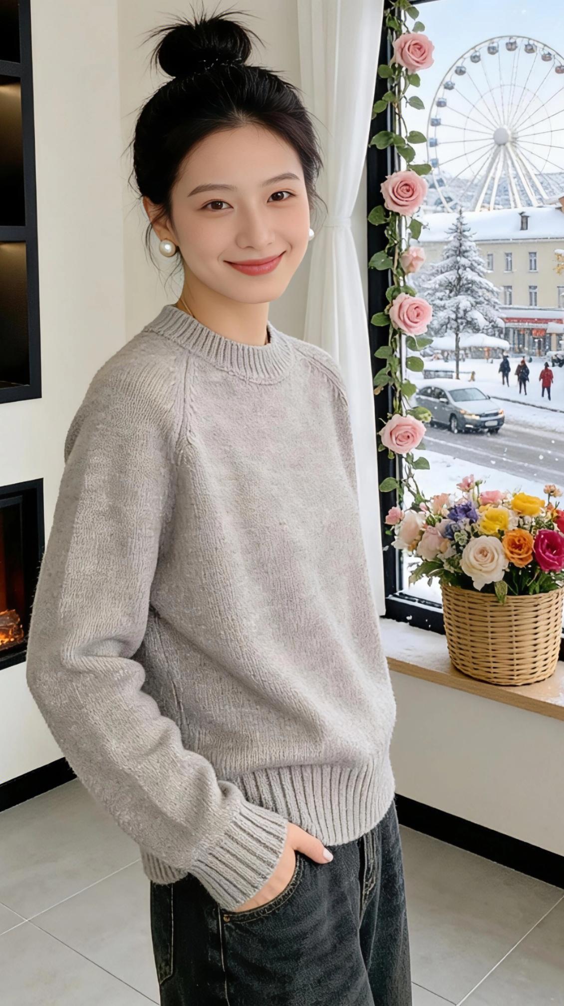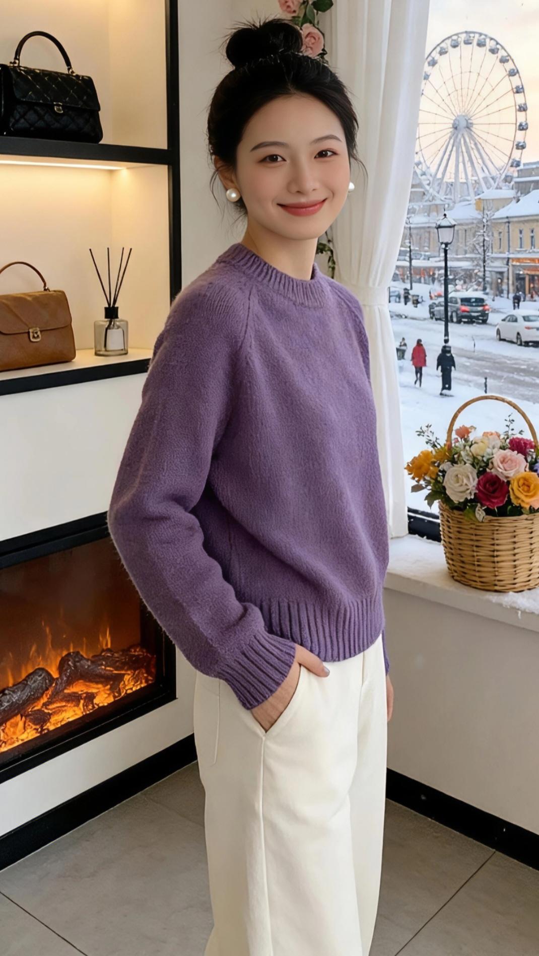 绒色里的冬日序章 窗棂外的雪,是十二月写在城市皮肤上的诗。我抱着一杯热可可站在壁炉旁,看暖橙的火光把紫色毛衣的绒线烘得蓬松,像揉碎了一捧紫雾,轻轻落在肩头。 浅灰那件总配深灰牛仔裤,是周末逛旧书店的默契。毛衣的纹理里藏着未干的雪意,指尖划过领口时,能触到针织纹路里的温柔。玻璃门映着我圆乎乎的丸子头,耳上的珍珠耳钉沾了点热气,像雪落在耳廓上。 正红的毛衣是为跨年夜准备的。穿上它,就像把一整簇壁炉里的火焰揉进了绒线。搭配垂坠的长项链,走动时银质吊坠轻撞锁骨,像雪夜里忽然响起的风铃。镜中的红与窗外的白撞得热烈,是属于年末的浪漫宣言。 奶白色高领最适合雪天散步。翻折的领口裹住半张脸,绒毛蹭着脸颊,像猫爪轻挠。走到街角花店,玻璃上的霜花模糊了花束的轮廓,我隔着雾气挑了支玫瑰,绒线手套沾了点刺,却暖得发烫。 原来冬天的浪漫,从不是雪本身,而是落在毛衣上的雪、壁炉边的热饮、以及不同绒色里,藏着的每一份温柔期许。 高级感穿搭冬季穿搭新年穿搭 针织毛衣