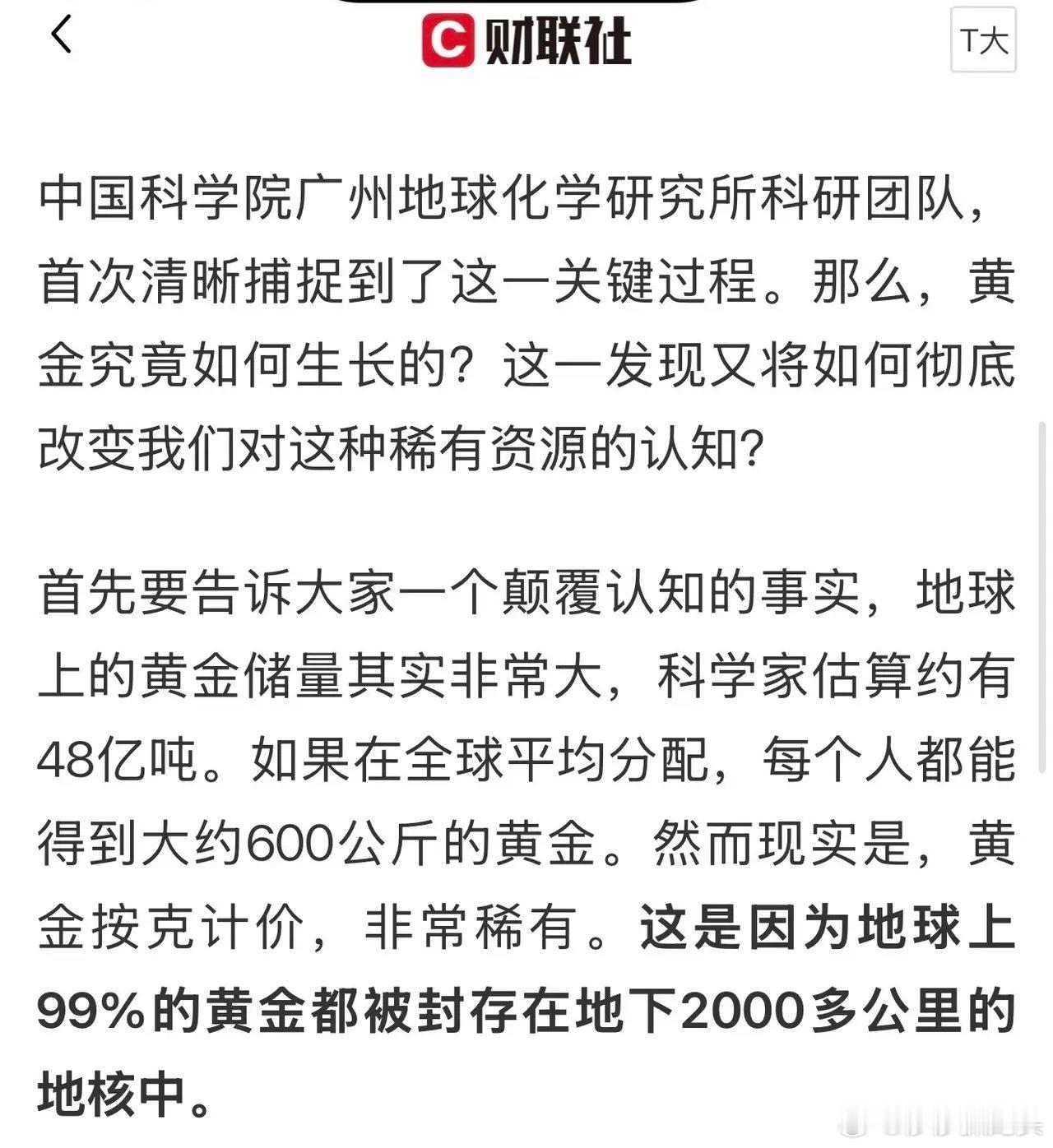 转发——告诉大家一个颠覆认知的事实:地球上的黄金储量其实非常大,根据科学家估算,大约有48亿吨,如果在全球平均分配,每个人能够得到大约600公斤……刚才我看到了一篇报道,报道当中提到了上面这一段文字。当然首先我觉得因为这个消息很好玩,所以分享大家。不过大家注意,文章当中也提到了,黄金储量虽然非常大,但是处在地下2000多公里的地核位置,这是很难被开采的。既然讲到了黄金板块,这里我就只多说两句!今天黄金板块全线大涨,板块涨幅达到了9.24%。几乎板块冲击涨停。关注莎莎哥的朋友都知道,从去年10月底开始,我在文章当中就多次以“彩蛋”的形式讲到了贵金属板块。目前黄金板块从技术面来看,今天跳空高开,高位拉出长阳线的走势,这种高位加速大阳线,且放出巨量,而且是在连续拉升之后的高位再加速,具备短线比较明显的加速赶顶特征,这是大家需要注意的。而且就黄金期货来看黄金期货从伦敦金的角度来看,伦敦金目前日线级别五浪上升结构特别的清晰。波浪结构也非常的充分,最近两个交易日也出现了加速赶顶的特征。当然,以上是我个人的观点,仅供大家参考,不代表任何投资建议!