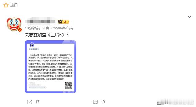 曝朱志鑫加盟五哈6朱志鑫将加盟五哈6曝朱志鑫加盟五哈6!非官宣不约,但我先接一个,坐等官宣!