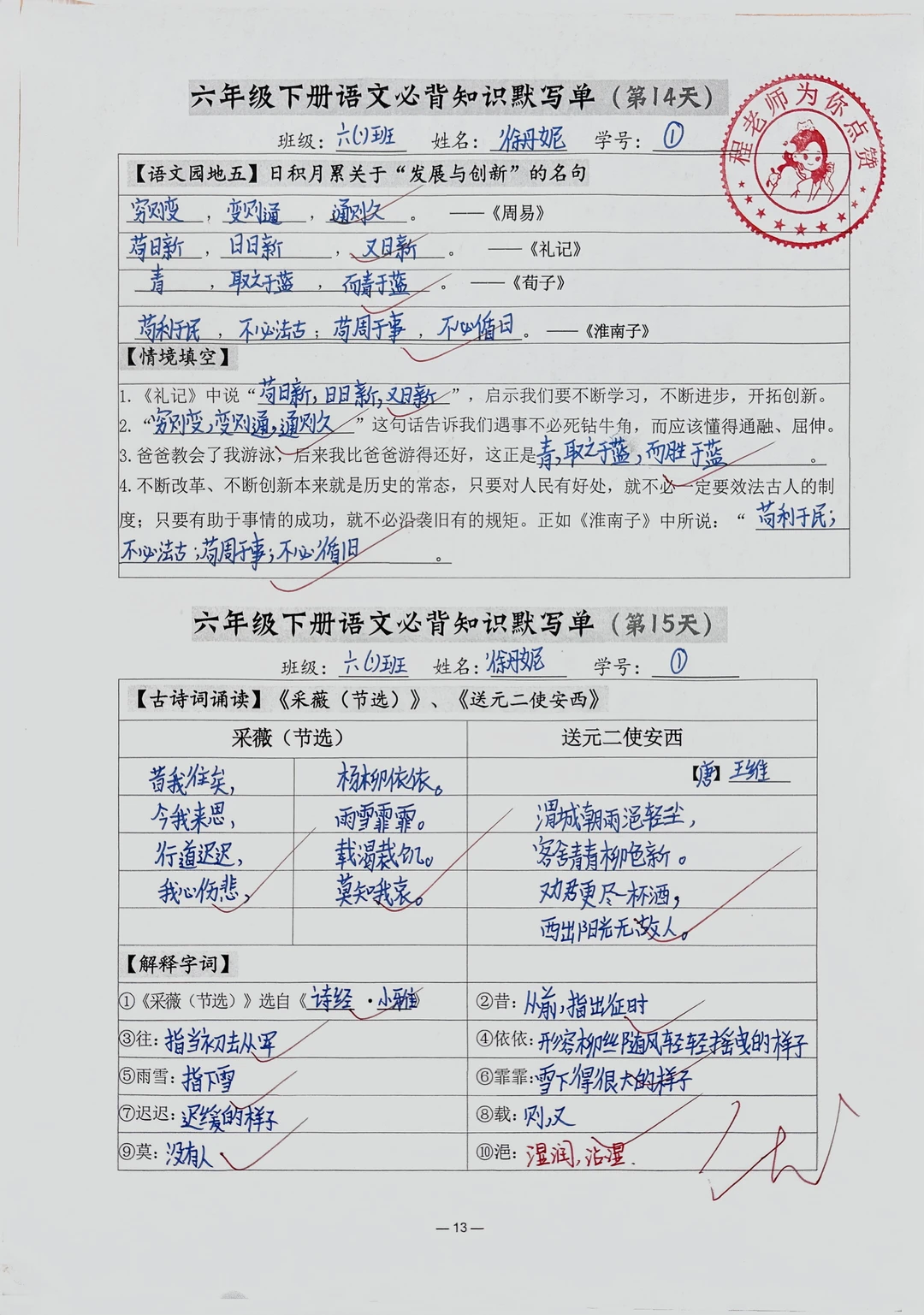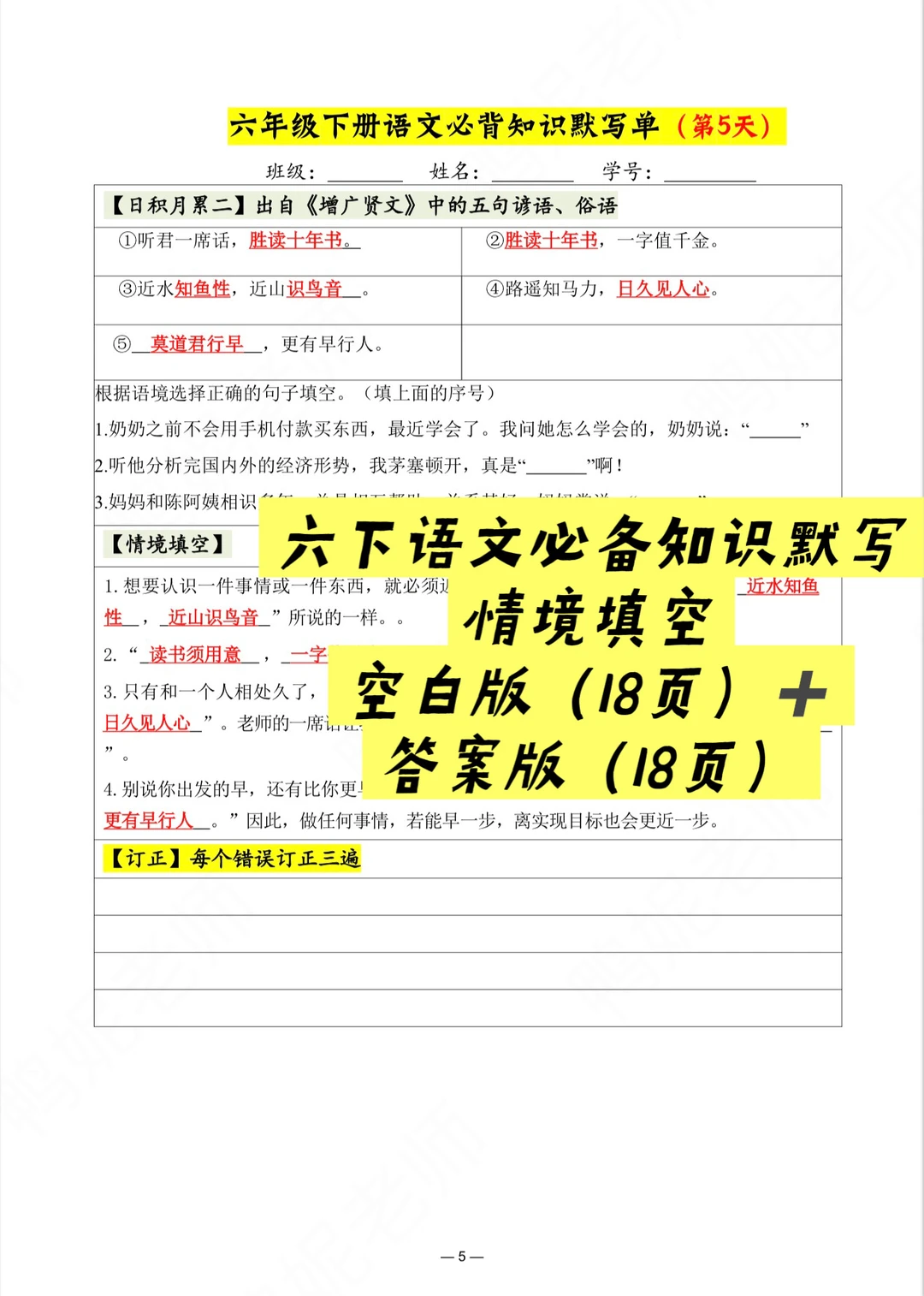 2026六年级下册寒假预习【必背内容】默写单+打卡表 空白版18页➕答案版18页 ▫️默写单:课文必背内容➕古诗文言文➕情境默写 ▫️打卡表:每日任务清晰,打卡留痕好复盘 每天15分钟默写打卡,夯实基础,开学再主攻其它难点! 先给娃们把基础知识夯实好,开学才有更多精力去主攻阅读和写作哦! (左下角有2026六年级下册必背内容全册梳理,宝子们自行下载哦!)