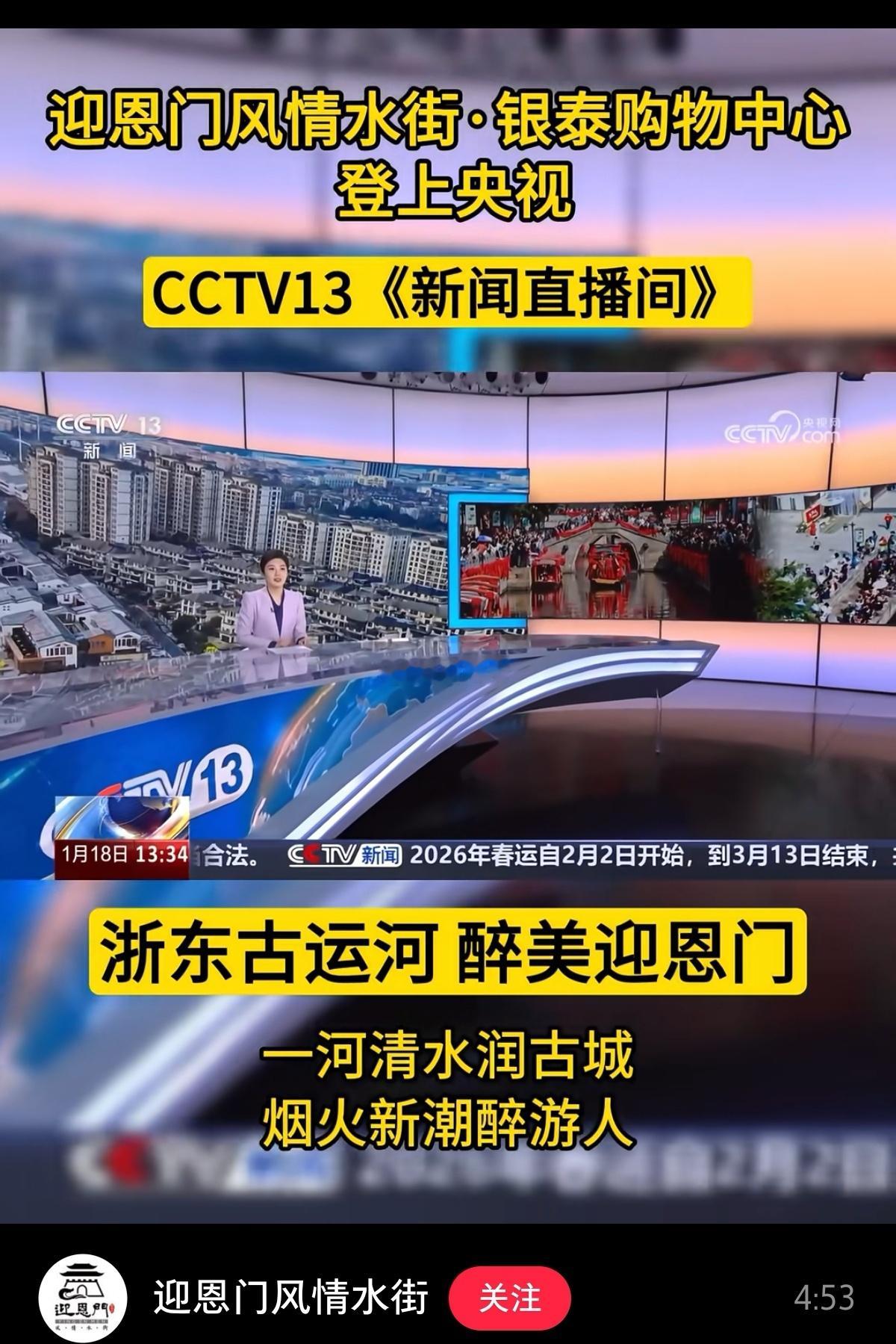 绍兴“迎恩门水街”,登上1月18日央视新闻。这里也是师爷非常推荐外地朋友来绍打卡点之一,晚上来逛最佳。