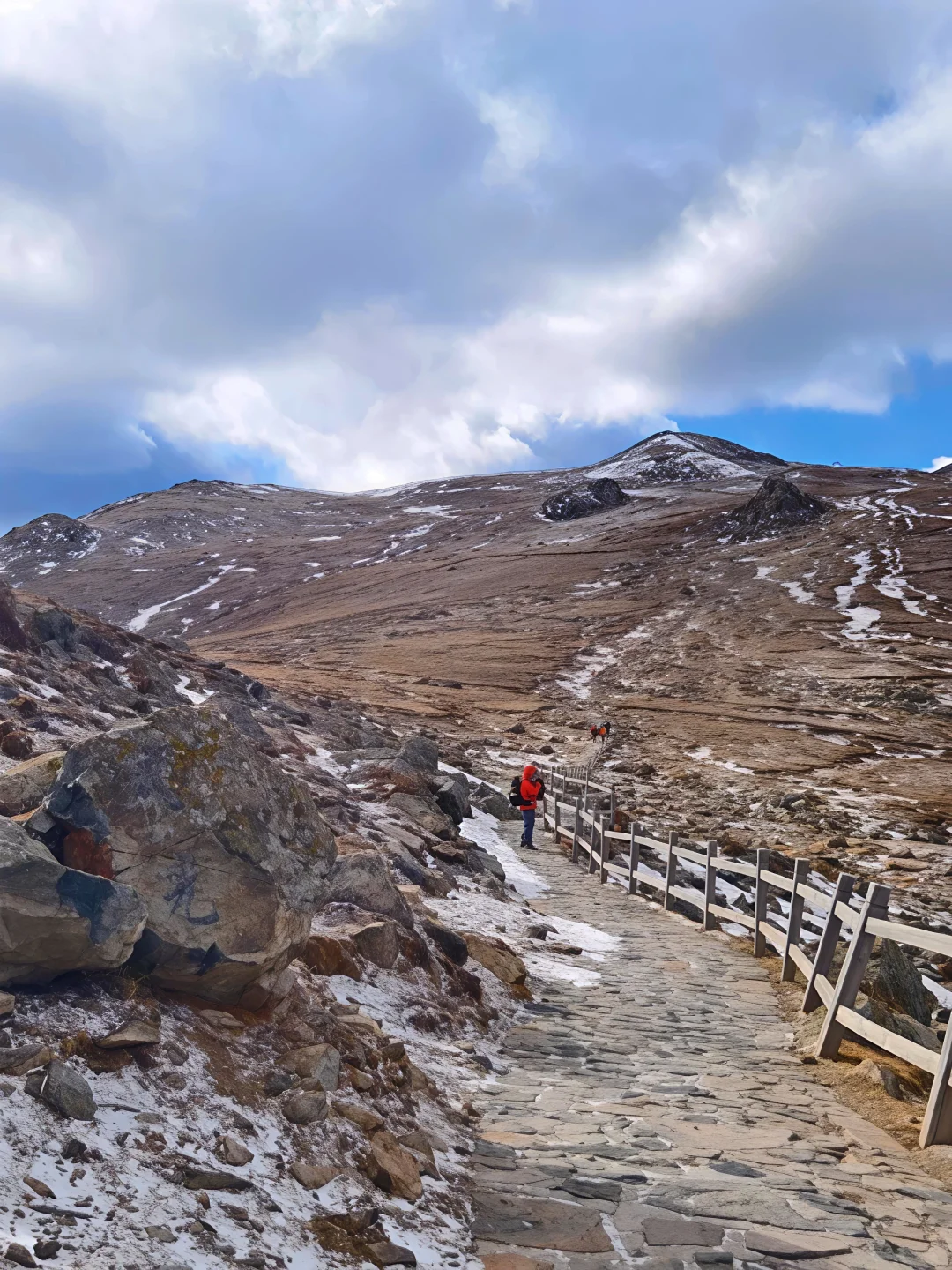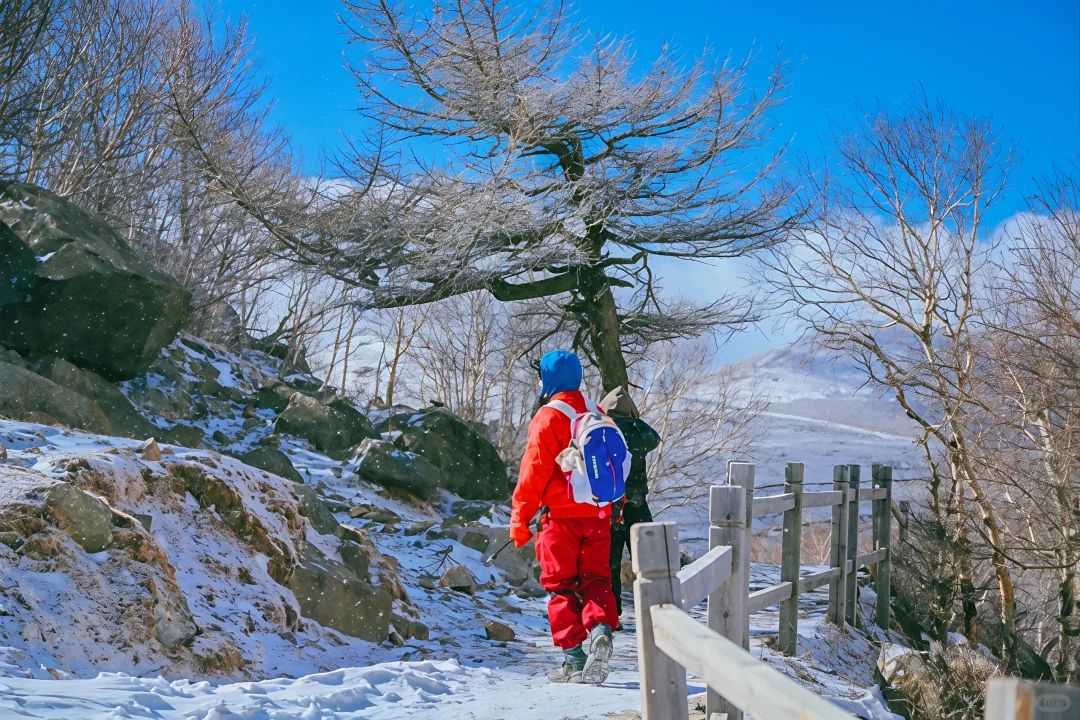 👉 踩着半化的积雪❄️咯吱作响,木栈道旁的枯草裹着冰晶💎,像撒了一把碎钻在山间。远处的岩石⛰️裸露出深褐色肌肤,和皑皑白雪形成鲜明对比,随手一拍都是windows桌面级美景🖥️。