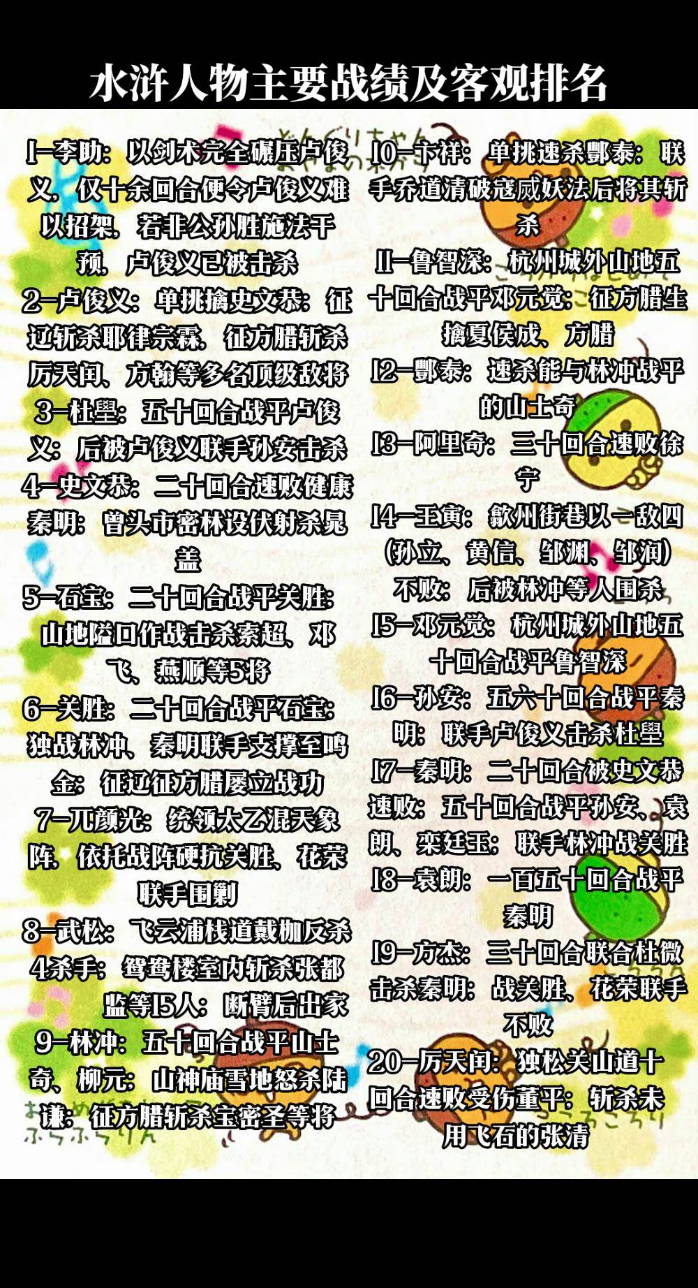 水浒传人物实力排名前三十六位