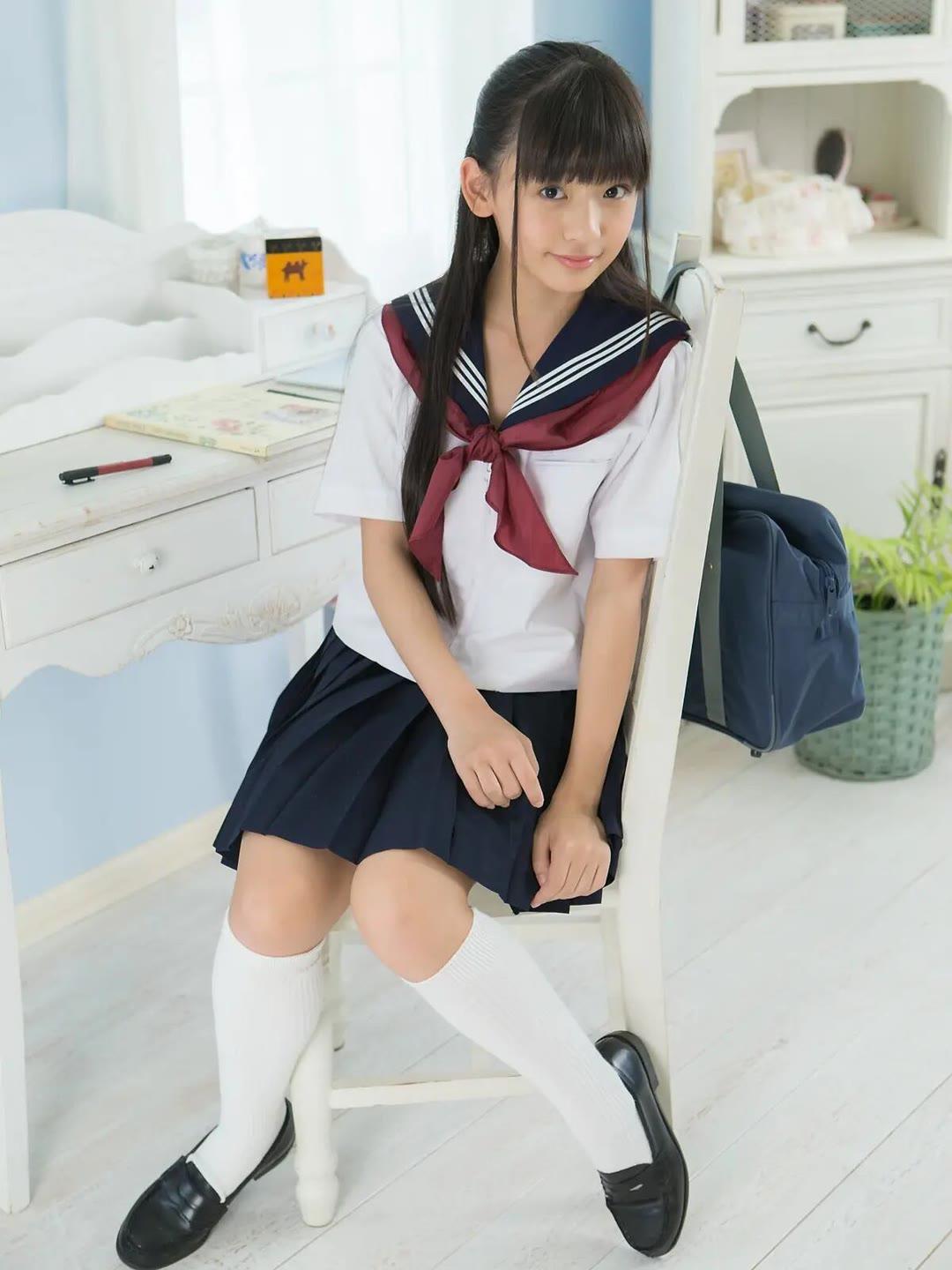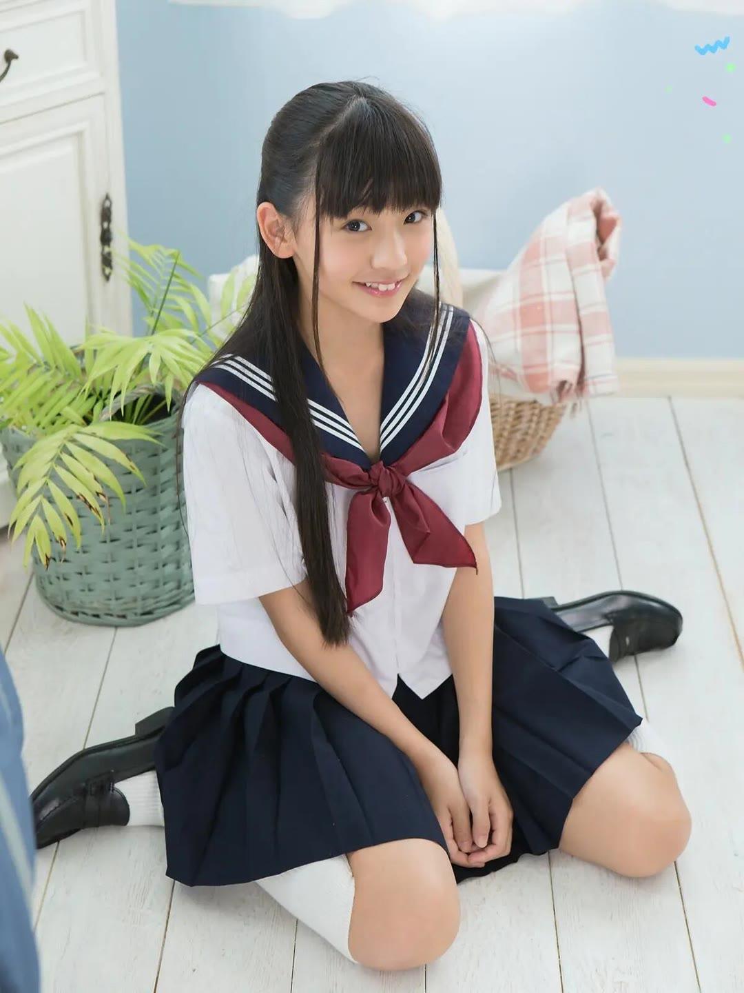 青春洋溢的校园风,少女甜美笑容,可爱制服,清新背景。
