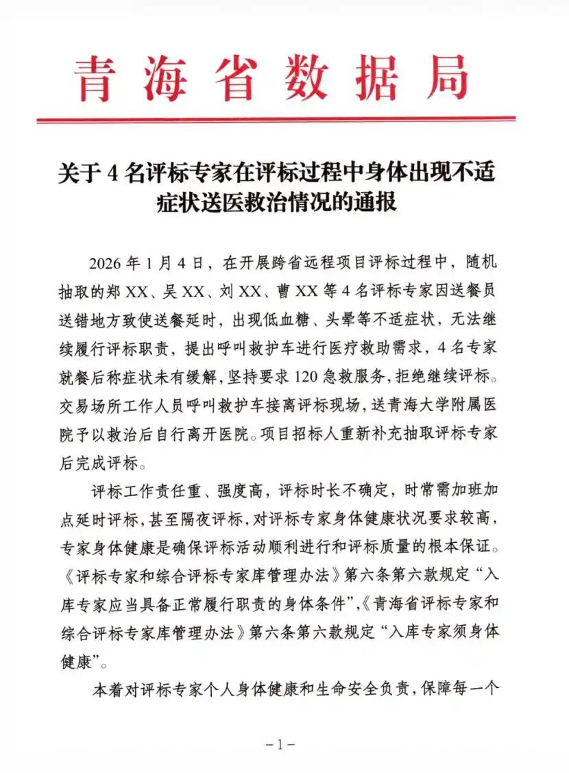 4名专家因为送餐延误拒绝评标,并强令叫120,最终被清理出省级专家库,这种处理适当吗? 青海省数据局给的理由是:评标工作责任重、强度高,评标时长不确定,时常需加班加点延时评标,甚至隔夜评标,对评标专家身体健康状况要求较高专家身体健康是确保评标活动顺利进行和评标质量的根本保证。《评标专家和综合评标专家库管理办法》第六条第六款规定“入库专家应当具备正常履行职责的身体条件”《青海省评标专家和综合评标专家库管理办法》第六条第六款规定“入库专家须身体健康”。 本着对评标专家个人身体健康和生命安全负责,保障每一个招标项目评标活动顺利进行,避免评标期间发生人身意外,根据《评标专家和综合评标专家库管理办法》第二十六条“对于入库后不再具备本办法第六条规定的条件,不再符合评标专家库组建单位制定的入库具体标准,或者存在本办法第七条规定情形的评标专家,评标专家库组建单位应当在发现有关情形后30日内与其解除聘任关系,调整出库,并通报入库推荐单位。”及《青海省评标专家和综合评标专家库管理办法》第四十四条“评标专家不再具备本办法第六条规定的条件,或者存在《评标专家和评标专家管理办法》第七条规定情形的,省管理部门应当在发现有关情形后30 日内予以调整出库,电子聘用证书自动失效,并通报入库推荐单位。”规定,省数据局研究决定,不再将郑XX、吴XX、刘XX、曹XX等4名专家聘任为省综合评标专家库评标专家,并调整出库。对4位专家积极参与和大力支持我省工程建设招标项目评标工作,为评标工作作出的积极贡献表示诚挚的感谢。 ------------------------------------ 强调一下,高赞所谓的“甘肃省兰州第一中学综合楼建设项目”是纯粹的强行关联,高赞纯在瞎讲。 一,项目对不上。 “甘肃省兰州第一中学综合楼建设项目”的设计标是12月26日开标,29日公布候选人,1月4日是公布中标结果,评标日期必然在12月26日-29日之间,而青海跨省远程异地是1月4日评标,日期压根对不上。 而该项目的勘察竞争性磋商公告是1月9日才发,勘察项目还没评呢。 二,人均面积瞎报。 项目建筑面积3万㎡,地上25342㎡,5-19层为学生宿舍,因此学生宿舍总建筑面积为25342*15/19=20007,对应3200床,人均建筑面积为20007/3200=6.25㎡,所谓的人均建筑面积5㎡不到,是从哪来的数据?