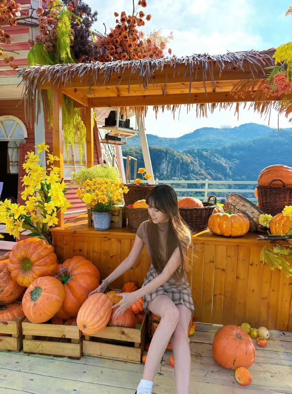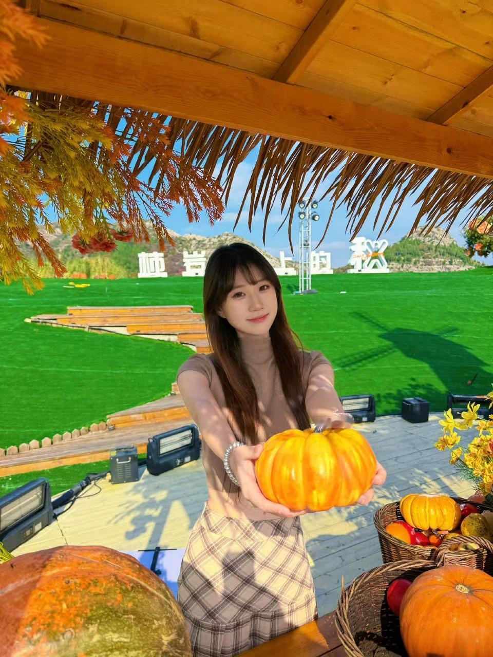 秋日田园风,少女与南瓜的温馨时光🍂🎃🌸