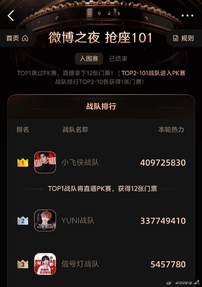 梓渝战队第二梓渝YUNI战队微博之夜门票战队排名第二,YUNI们的战斗力真的都超级超级棒!未来有无限可能,以后会越来越好的,继续加油!2025微博之夜爆款创作大赛