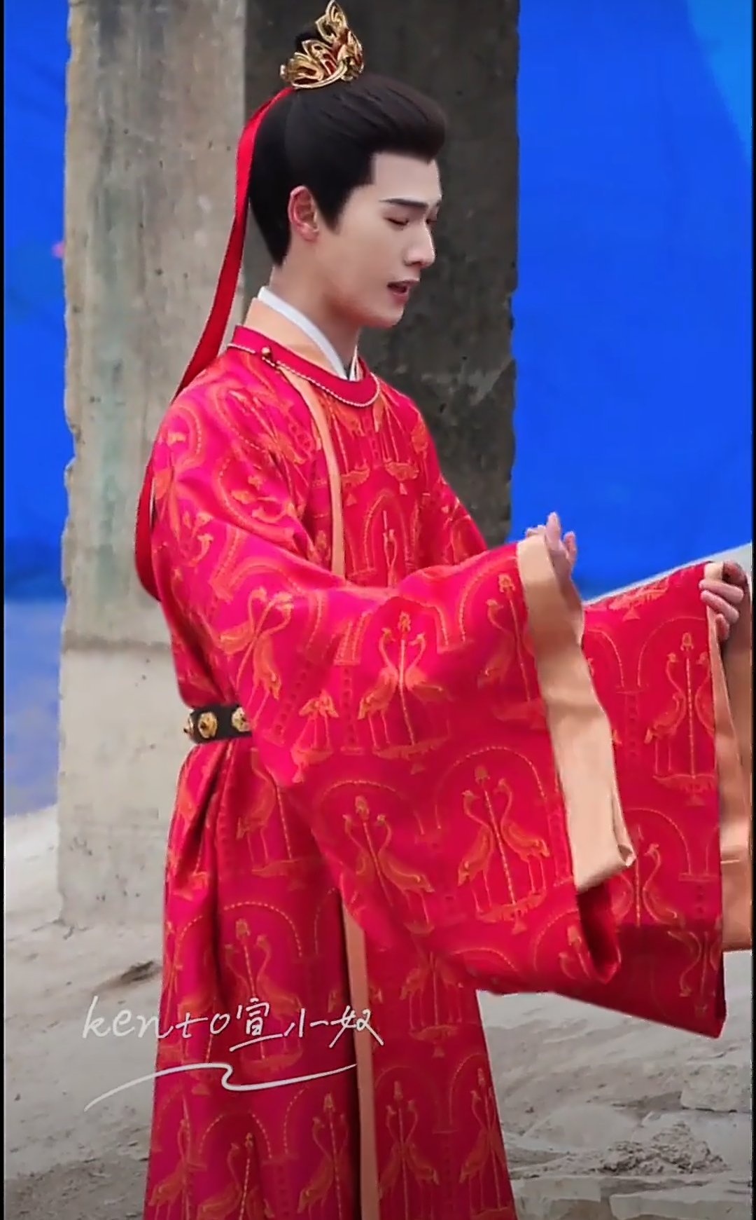 李昀锐尚公主婚服造型路透,言尚红衣好衬人