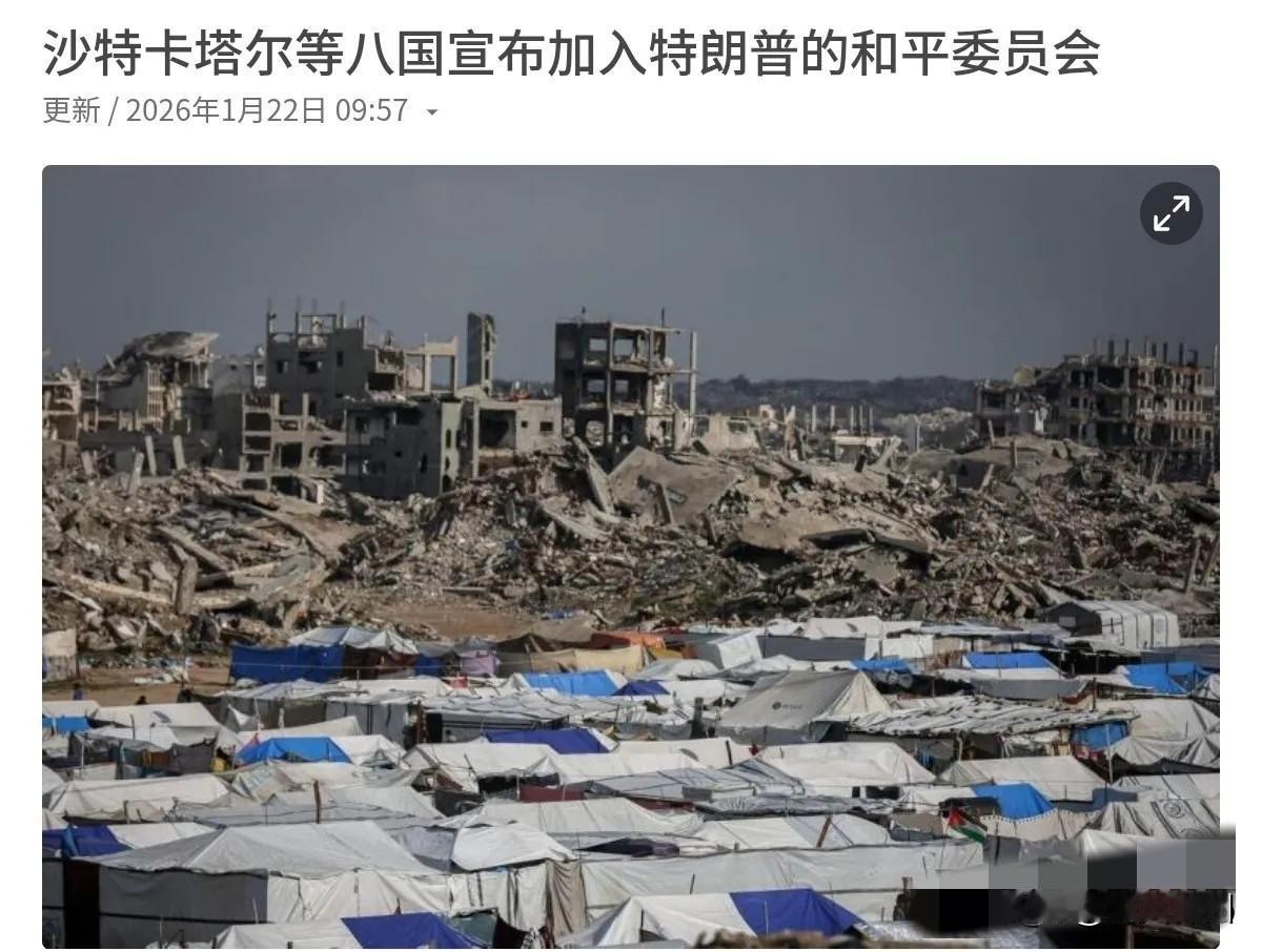 我们也该做出决定了!在俄罗斯总统普京表示有意加入“和平委员会”之后,又有八个国家宣布加入“和平委员会”!1月21日,沙特阿拉伯在一份联合声明中宣布,沙特、卡塔尔、土耳其、埃及、约旦、印度尼西亚、巴基斯坦,以及阿联酋的外交部长“共同决定”加入由特朗普担任主席的和平委员会,并表示他们支持特朗普在以哈冲突问题上的“和平努力”。 评几句: 8国扎堆特朗普和平委员会!和平外衣下,全是美国霸权的算计 突发!特朗普和平委员会再添8国!普京表态有意加入后,沙特、卡塔尔等8个中东国家火速官宣入局,齐声支持其“以哈和平努力”!可这场看似多国共推和平的盛宴,实则从头到脚都写满了美国霸权的精心算计,这哪里是和平委员会,分明是美国的霸权工具,谁看不出来? 特朗普为和平委员会定下专属规则,自封主席手握绝对大权,这套规则里哪里有半分国际组织的平等与公正?他甚至直言这一机构或取代联合国,扬言“不需要国际法”,其妄图抛开现有国际秩序、打造美国一言堂的野心,早已昭然若揭!所谓监督加沙治理,不过是美国想把加沙攥在手里,将和平委员会变成其操控中东、谋夺利益的工具,靠霸权操控的机构,岂能带来真正的和平? 8国入局各有盘算!中东国家想借特朗普和平委员会的平台推动以哈停火,普京表态则坚守联合国框架,力挺巴勒斯坦合法权益,可各方的和平诉求,终究抵不过美国的霸权私心。一边是特朗普的独断专行,一边是以色列的坚决反对,连美国欧洲盟友都纷纷观望拒绝,这场各怀心思、拼凑起来的和平联盟,从一开始就根基摇摇欲坠,这样的联盟,又怎能走得远? 更可笑的是,巴以作为冲突核心当事方,在这一特朗普和平委员会中竟毫无足够话语权,这般脱离冲突实际的机制,不过是美国自导自演的和平闹剧,一场彻头彻尾的政治秀!和平从不是某国的独断专行,更不是抛开国际法的霸权操控,特朗普的霸权算盘,终究抵不过国际社会对真正公平正义的追求!这场特朗普和平委员会,打着和平旗号的霸权闹剧,最终只会沦为美国操控中东的又一注脚,违背公平正义的和平终究只是镜花水月,这样的虚假和平、霸权闹剧,国际社会怎会认可?怎会买账?