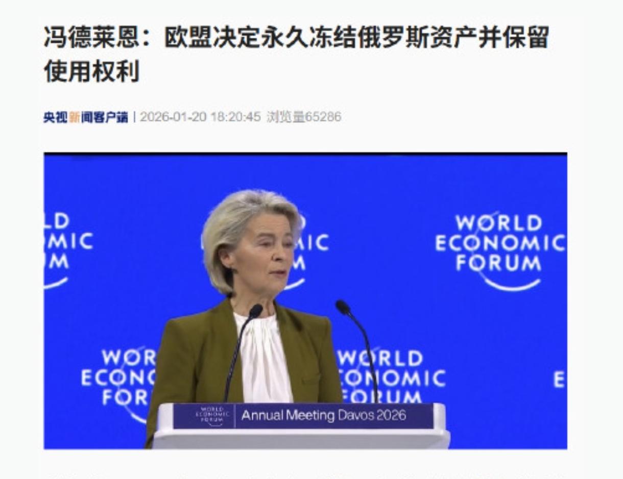 欧盟用行动证明,他们没有“契约精神”。 欧盟委员会主席冯德莱恩在瑞士达沃斯发表讲话表示,欧盟决定永久冻结俄罗斯资产,并保留使用这些资产的权利。 这个“权利”谁给的,莫非是“应许之地”,也就是“上帝”赐予的?各国主权资产不容侵犯,而欧盟却做了违反规则的事情,不值得相信,未来在欧洲固定资产投资不仅要减缓,而且要减。 欧盟企图通过这种方式取悦美国 ,却牺牲俄罗斯,显然俄罗斯不会罢休,丢了的,都会加倍要回来,欧盟正在走一条不归路。至于瑞士的“中立”,更是笑话。