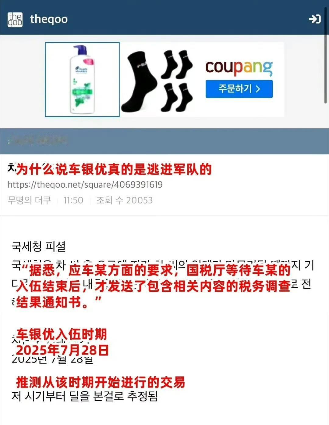 车银优被爆200亿韩元逃税,要求入伍后再公布被嘲“军遁” 韩国顶流车银优被爆涉嫌逃税,韩国国税厅已向其追缴高达200亿韩元(约合人民币1亿元)的税金。 更引发争议的是,他竟能要求国税厅等自己入伍后再公布调查结果,这一操作被韩网嘲讽为“军遁”,质疑其利用入伍逃避舆论压力。 从国内到国外,明星利用特权、触碰法律红线的事件屡见不鲜。车银优这一事件,也让大众再次看到了娱乐圈里“规则为明星让路”的荒诞现实。