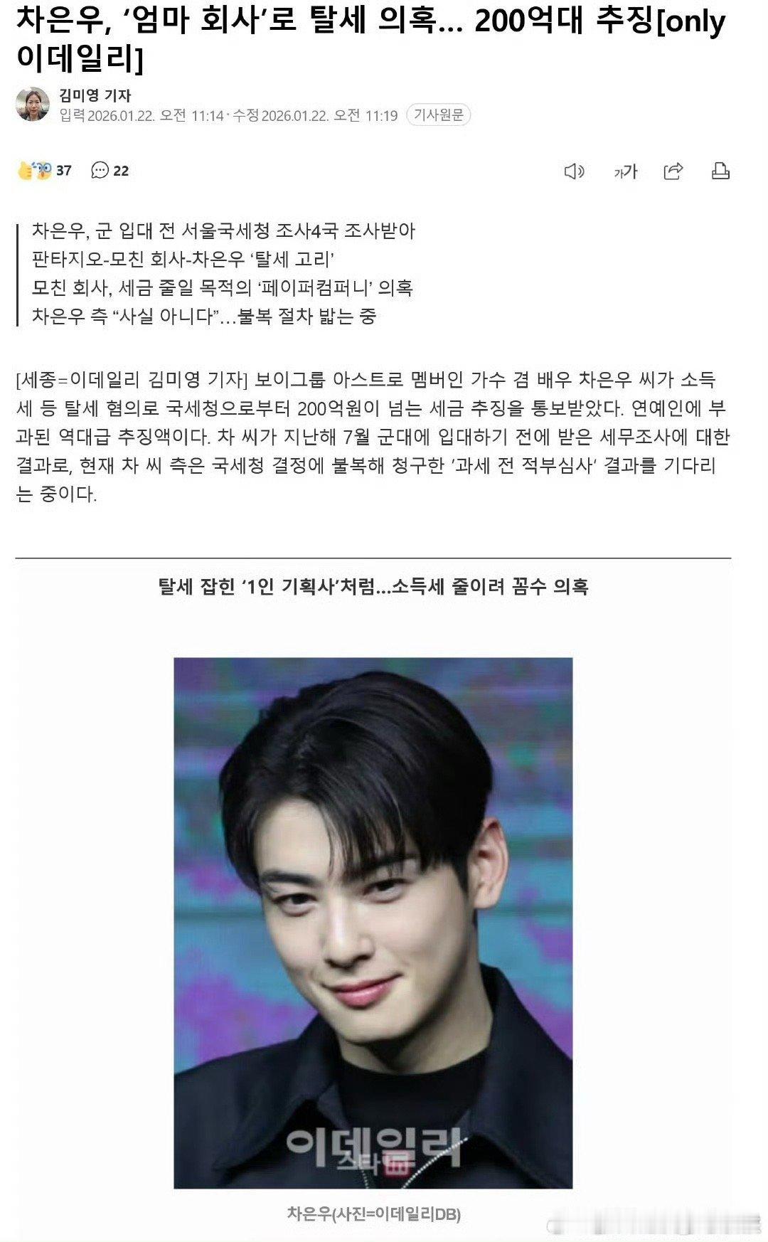 韩媒报道 车银优涉嫌逃税200亿 折合rmb9400万 目前正在追缴 若抗拒执法恐面临牢狱之灾车银优涉嫌逃税