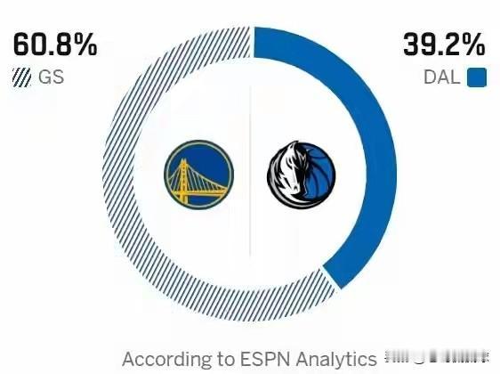 ESPN真是太高看勇士巨星库里了!明天勇士将会在客场挑战独行侠,今天ESPN对于明天的比赛进行了一番预测,结果让人大吃一惊,ESPN预测勇士赢球的概率高达60.8%,而主场作战的独行侠仅有39.2%的获胜概率。 ESPN真是太高看库里的带队能力了,在巴特勒因伤赛季报销的情况下,库里想要单独带领球队击败独行侠真的非常难,独行侠只要掐死库里就必胜无疑。