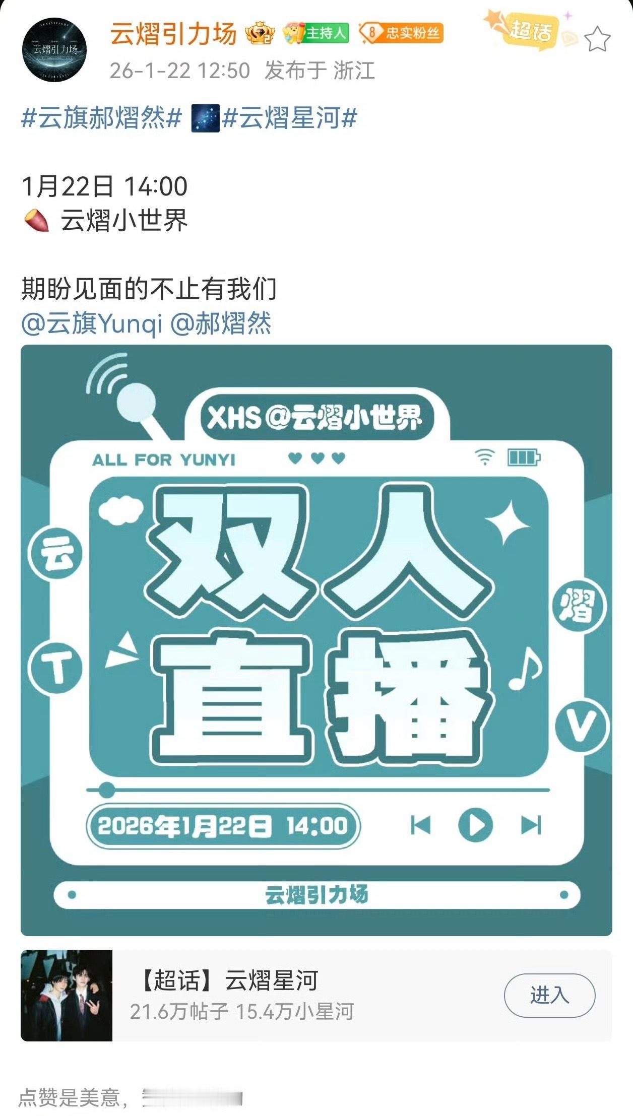 云熠星河直播云旗郝熠然双人直播云旗郝熠然今天下午两点有双人直播,我的家产终于回来