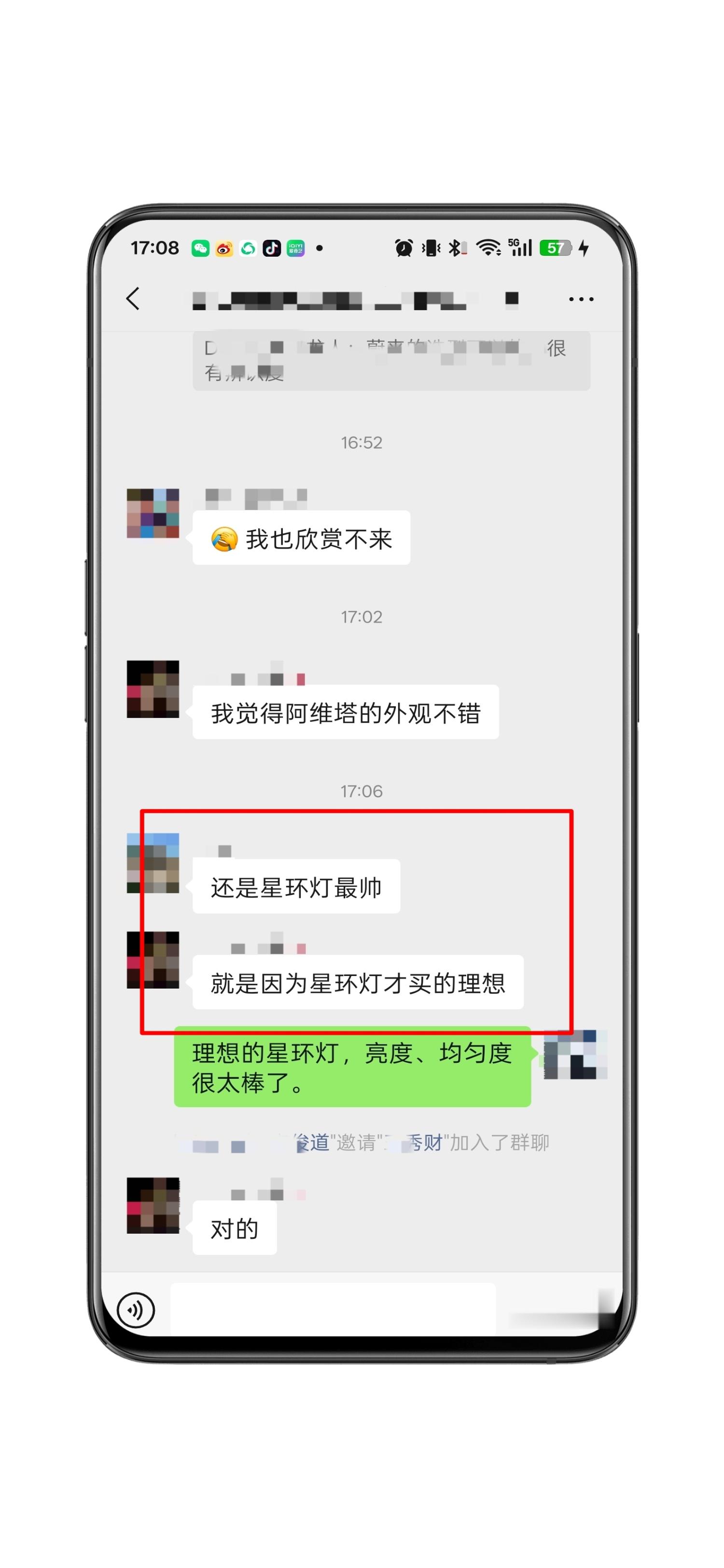 群里有人说因为星环灯才买的理想咳咳,我也是啊,星环灯是喜欢理想外观的重要因素。主要亮度、均匀度都做的一级棒,晚上开着太靓了