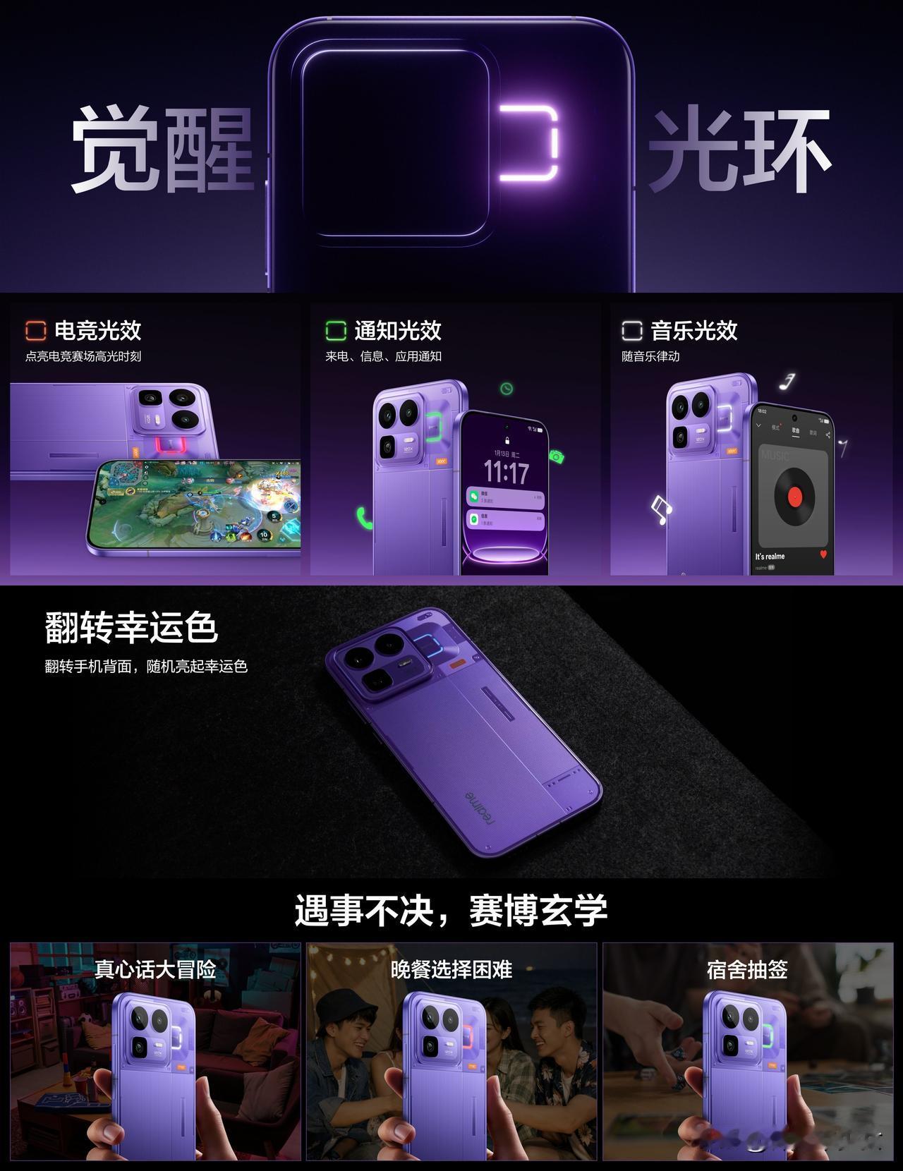 【挑战透明设计天花板】 行业首创单层透明立体分区工艺,配合机械浮雕设计11 种深浅纹理,光影层层折射。更有Make it real铭牌,致敬性能信仰,彰显做真我态度! 【觉醒光环系统升级回归】 支持电竞、通知、音乐等专属光效,游戏联动、音乐律动、拍照倒计时、智慧弹码等功能之外,更有独创翻转幸运色,翻转手机背面,随机点亮每日幸运色。 【Neo系列前所未有的质感升级】 磨砂金属中框+透明玻璃后盖,优雅大R角,正面超窄视觉四等边,颜值与沉浸感同步提升。 【多元潮玩电竞配色各有态度】 「赛博紫」赛博朋克世界的未来配色,绽放电竞力量 「起源白」极具科技感和极简主义,宛如纯净初生 「机甲灰」机械拼接风格,坚毅而又性能气场拉满