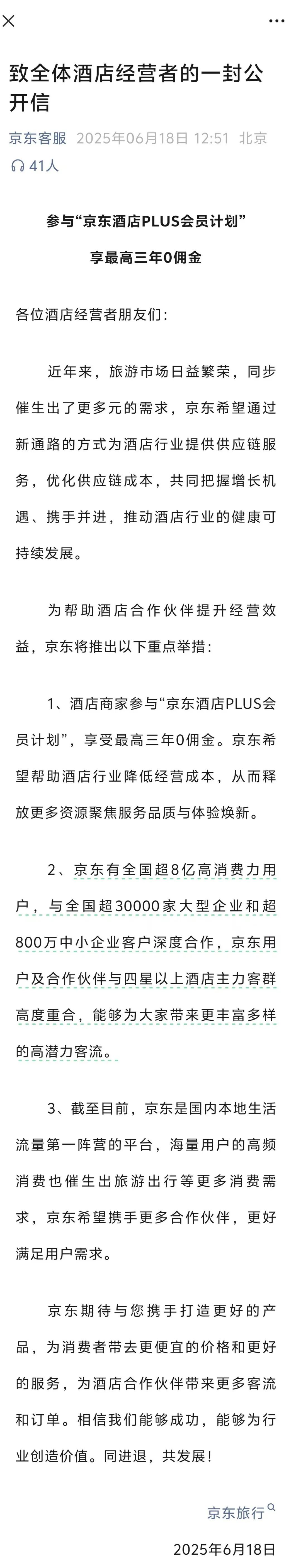 2025年6月,京东正式宣布进军酒旅行业,以此打造“外卖+酒旅”的业务组合拳。