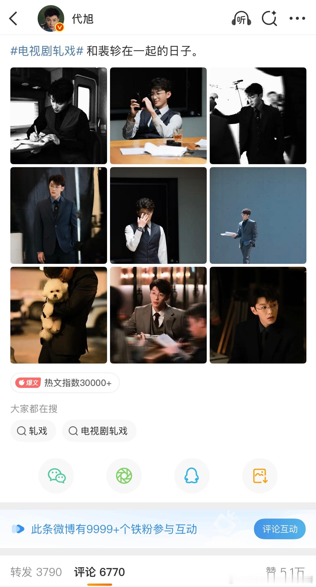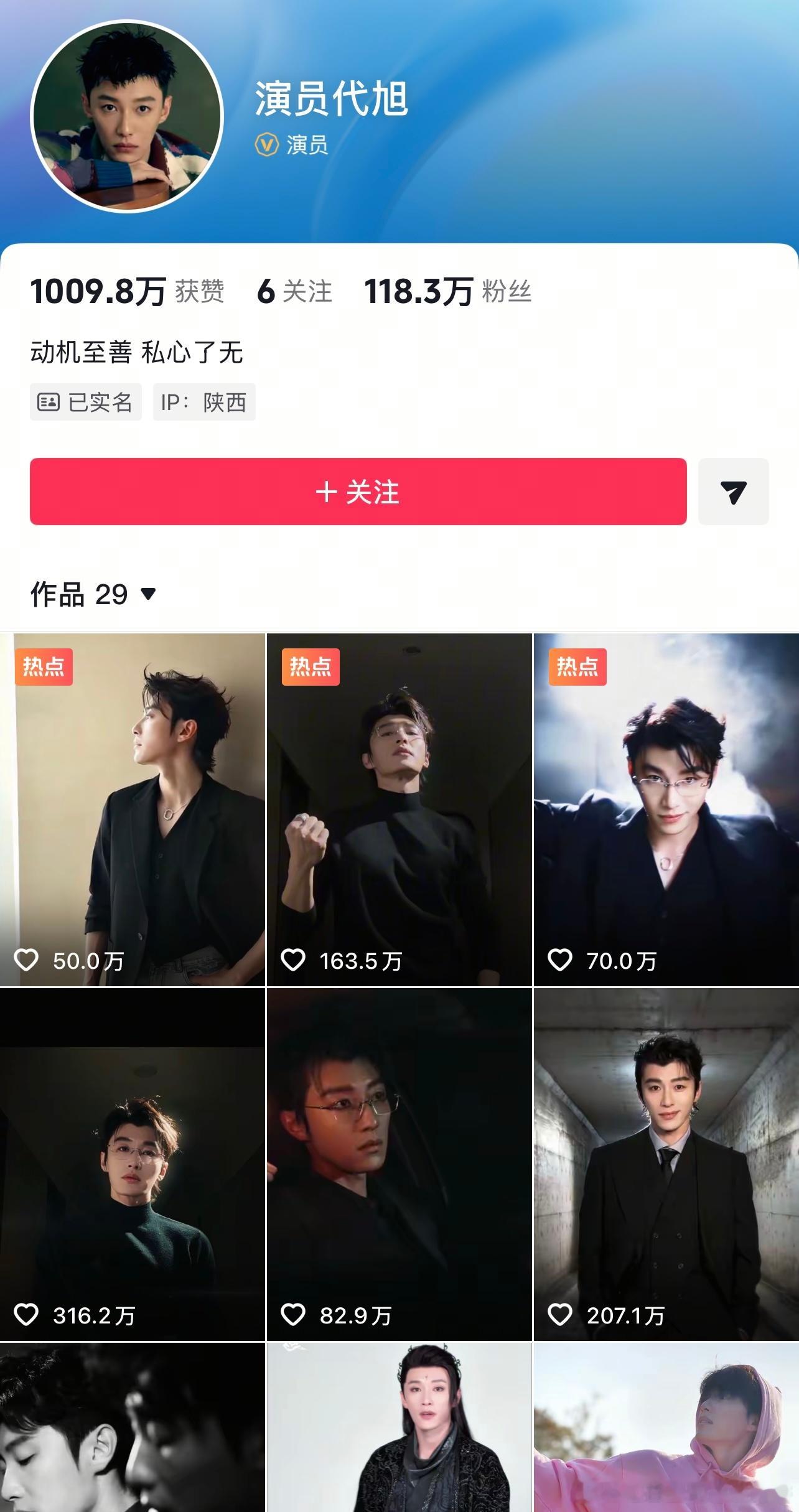 代旭第一条微博9999➕铁粉成就达成,dy也百万粉了,他在轧戏的确吸到粉了