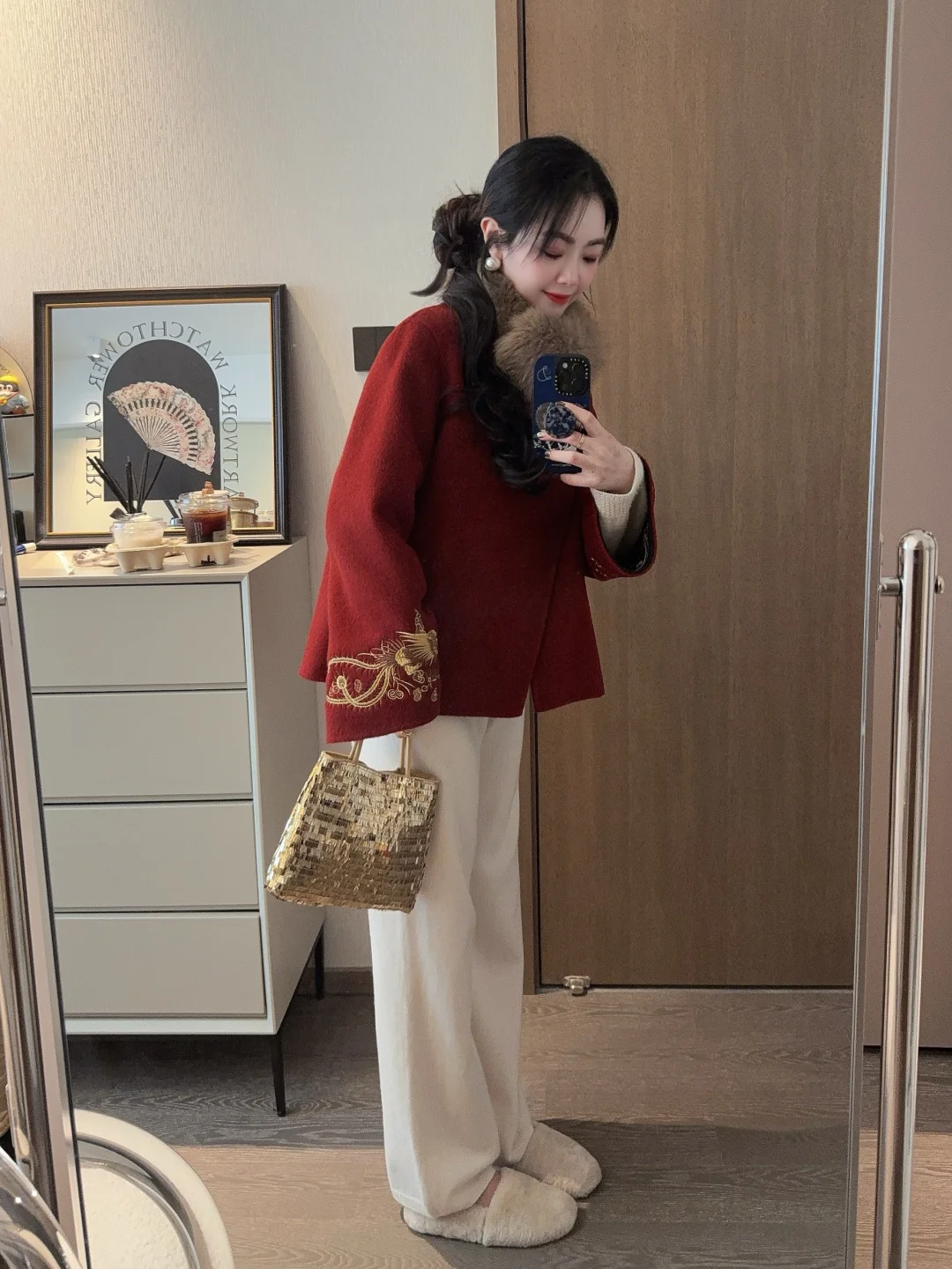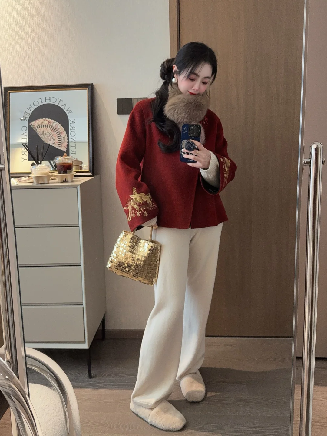 终于终于等到了我盼望已久的毛毛围巾🧣 这个卡其棕真的好暖和好洋气好喜欢😍 给妈妈夸了半天的大红色ootd!今年可能也就买了九十九件新中式叭😅 新年去长辈家就这样穿! 雪后放晴的一天,心情也是一样的🌞