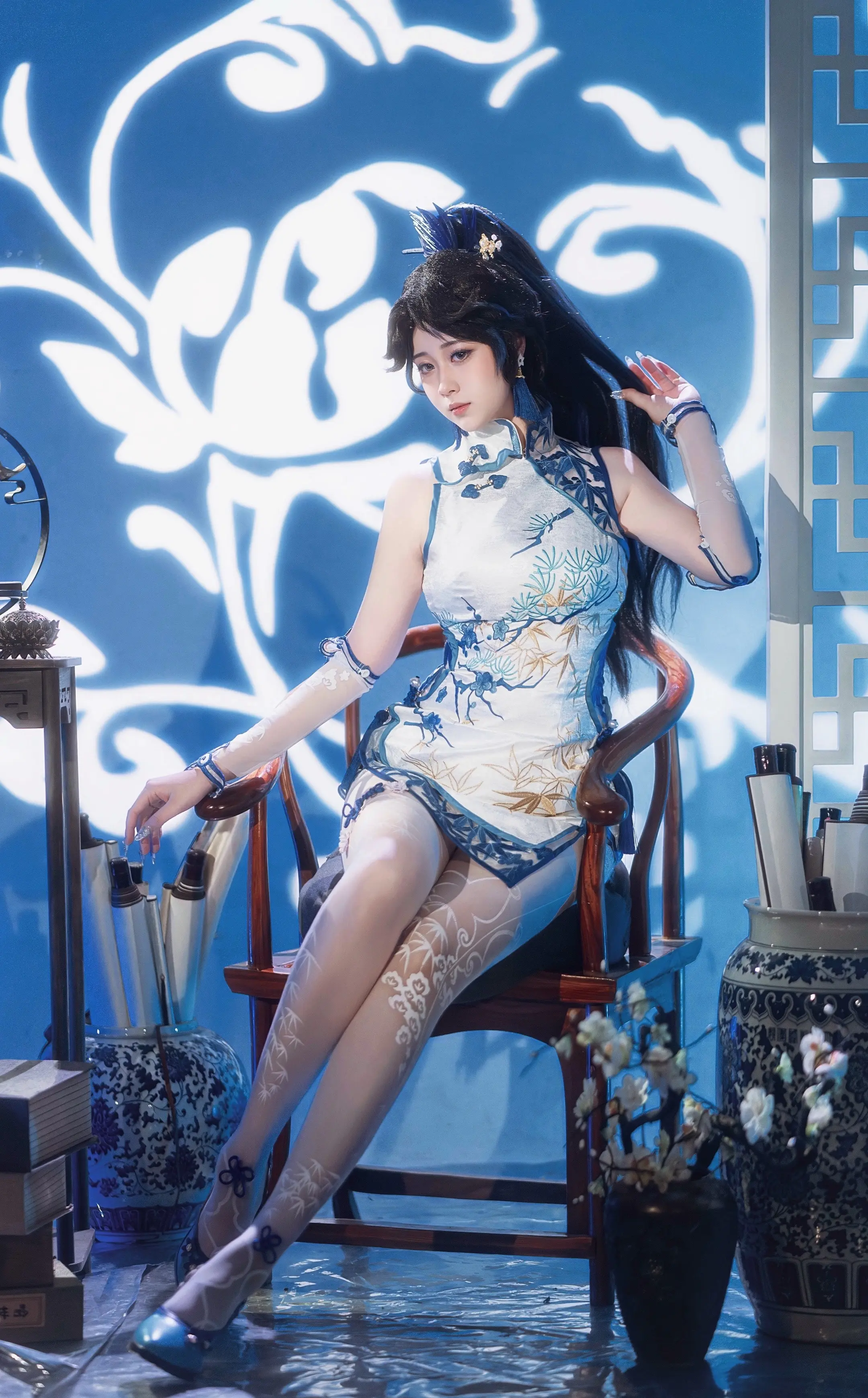 古风少女,水边漫步,花簪点缀,唯美如画