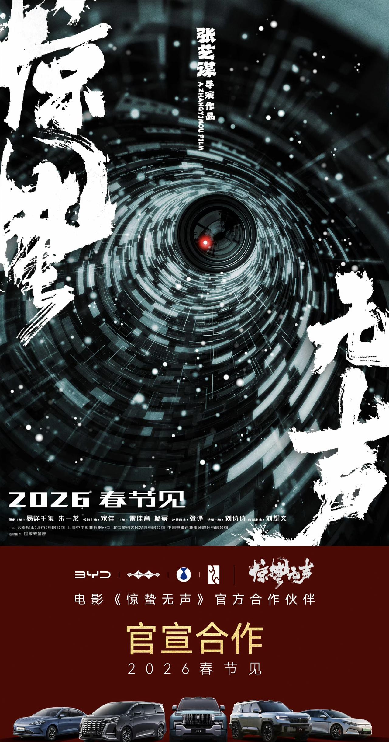 现在比亚迪是越玩越高端了,王传福的魄力够大啊。宣布和张艺谋合作,进军电影春节档,把车型直接搬上大银幕。 比亚迪正式官宣,成为张艺谋新电影《惊蛰无声》的官方合作伙伴,春节期间会和大家见面。 《惊蛰无声》是一部国家安全题材的主旋律电影,到时候应该能在电影里看到仰望U8,腾势D9,方程豹豹8,汉L EV,海豹05 DM-i等诸多车型亮相。 比亚迪这些车型大概率还是在电影中充当国家安全部门的工作用车,进一步强化其在性能,安全,可靠性等方面的形象。 此前在同样是国安题材的电视剧《绝密较量》中,比亚迪诸多车型也都有大量的曝光镜头。此次比亚迪和张艺谋的合作,也体现了比亚迪宣传策略的延续性和进一步加码的力度。 两者合作无疑也是双赢的好事。 张艺谋新电影有易烊千玺,朱一龙,雷佳音,杨幂,宋佳这样的大阵容,再加上好的故事情节和比亚迪层面的支撑,票房可以更加有竞争力。 比亚迪车型在倍受瞩目的春节档曝光,也能带来品牌形象的增益,更有助于其在家用级,商务用车,甚至是公务用车等对公销售的市场影响力。 目前比亚迪的品牌策略确实越来越高端,包括此前和国际米兰合作等都能看得出来,当然敢这么玩的前提还是基于深厚的实力和品牌高端化发展的需要。 不知道大家对比亚迪和春节档新电影《惊蛰无声》的合作怎么看?【来自懂车帝车友圈】