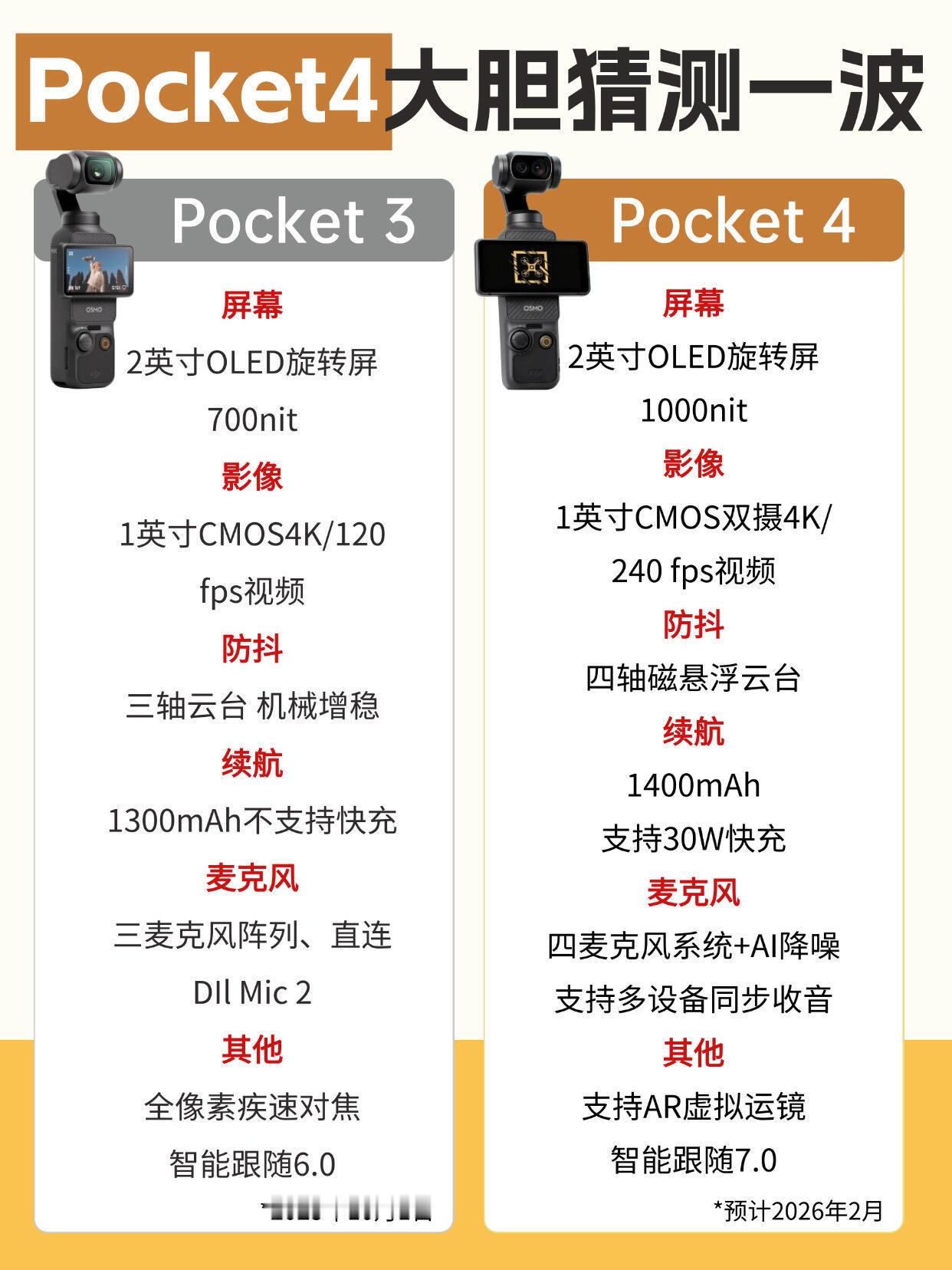 大疆pocket4发布时间大疆pocket4发布时间预计会在今年的第一季度末。这玩意终于来了啊,自媒体现在人手一个,确实拍摄方便了很多。到时候可以下单一定要抓紧时间订,不然发货时间又是很久。