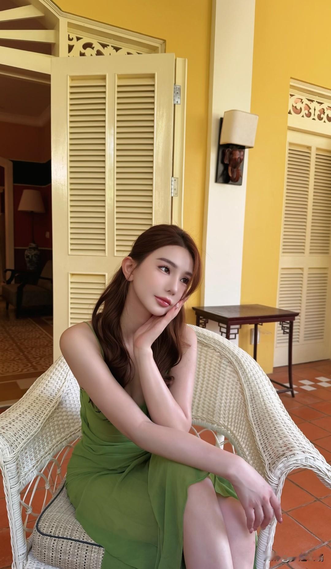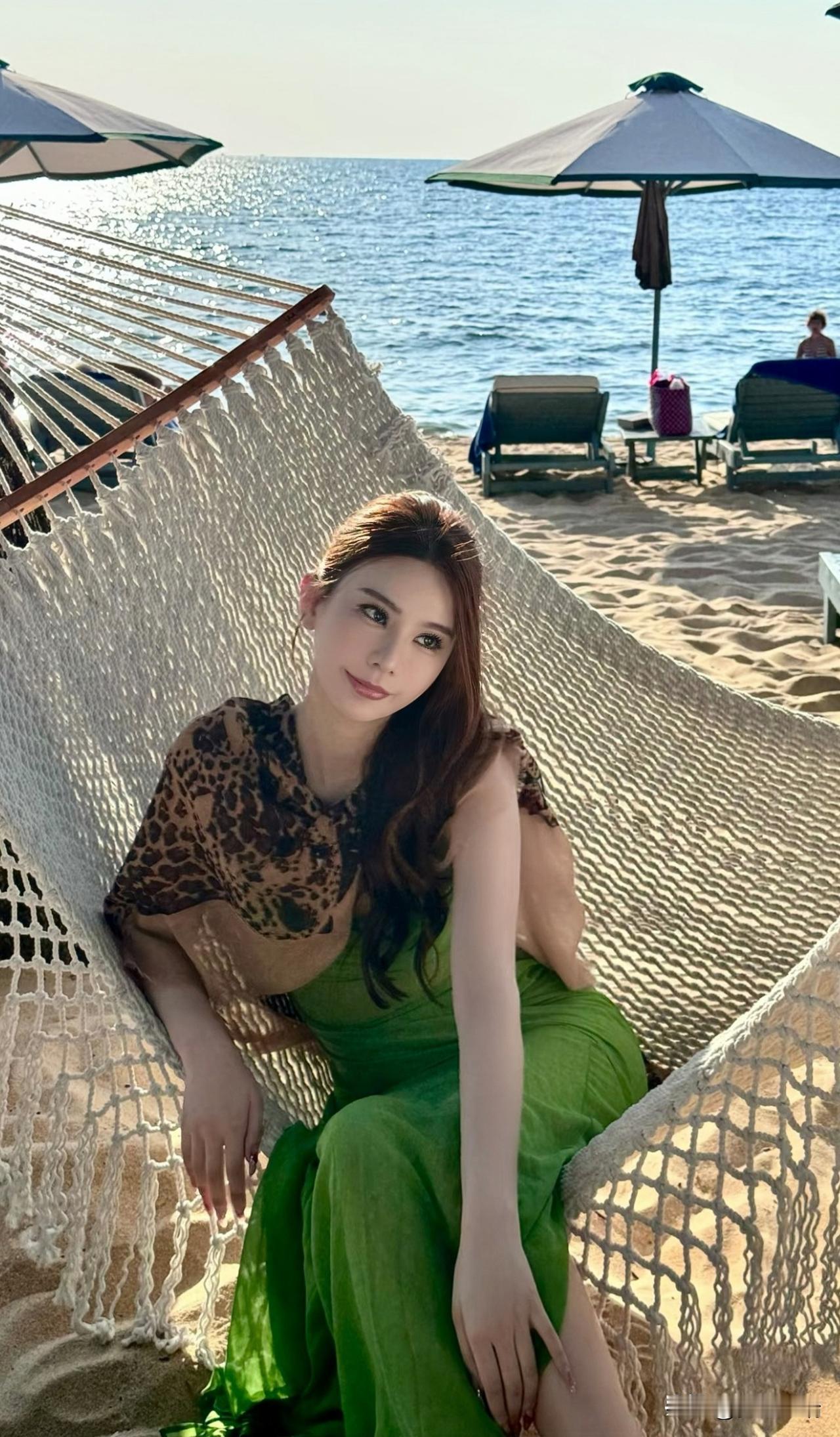 海边的清新绿裙,阳光下的美丽瞬间。