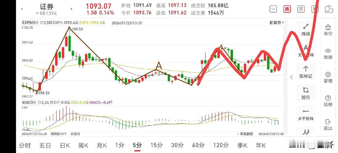 聊聊证券板块(2026.1.23) 在昨晚的文章中讲过,今天大概率会转折向上,逐