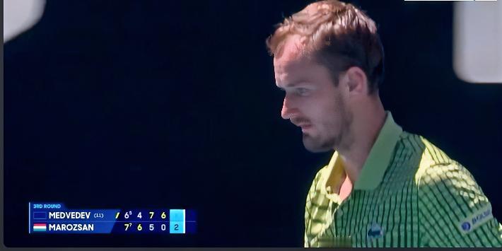 网友:梅总油量好足!!竟玩起了5盘大战,难不成是要上演让二追三的戏码? 在正在进行的澳网男单第三轮比赛中,梅德维杰夫对阵毛罗然,梅德维杰夫一上来6-6、4-6连输两盘,接着7-5、6-0连扳两盘,将比赛拖入决胜盘,目前决胜盘正在进行中,梅德维杰夫3:2领先,梅总加油加油梅德维杰夫