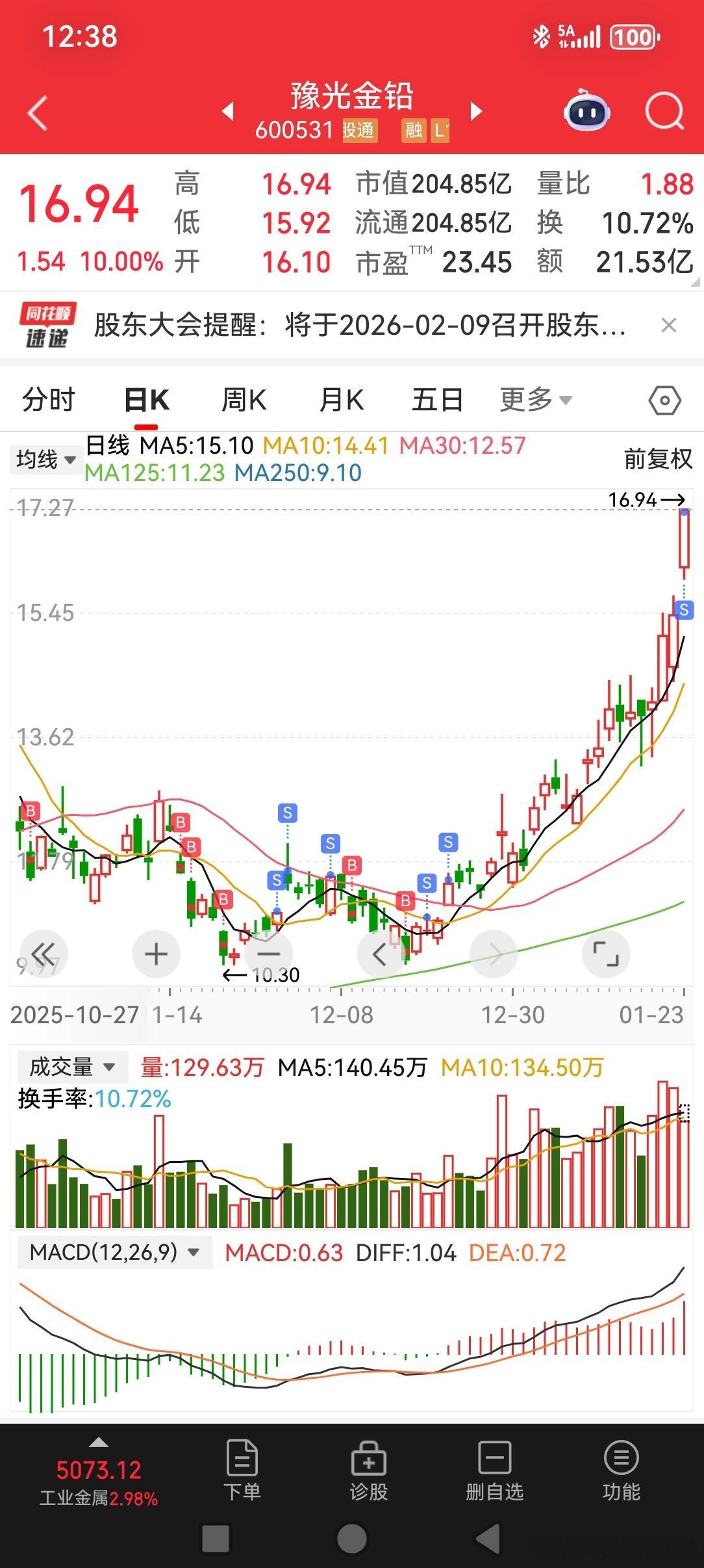 2026/1/23复盘豫光金铅国内白银龙头,构筑底部并完成突破,启动牛市第三浪。