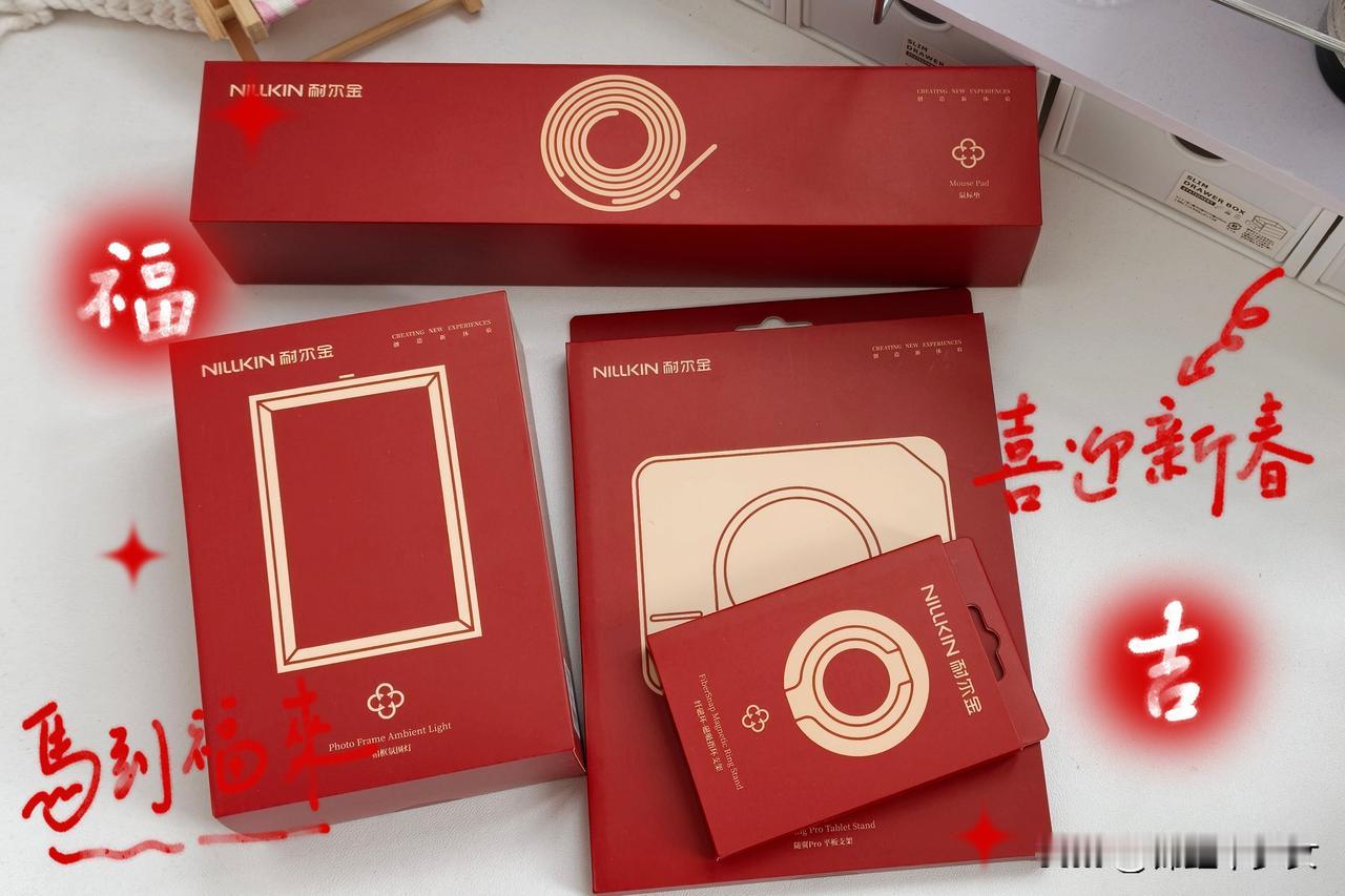 今年的第一份新春礼盒来自耐尔金,这一次的产品都带有“马蹄纹”元素。磁吸平板支架轻薄能打,鼠标垫颜值在线,手机磁吸支架也很方便,还有一个相框灯,桌面瞬间有了新年氛围啦。耐尔金春风得意