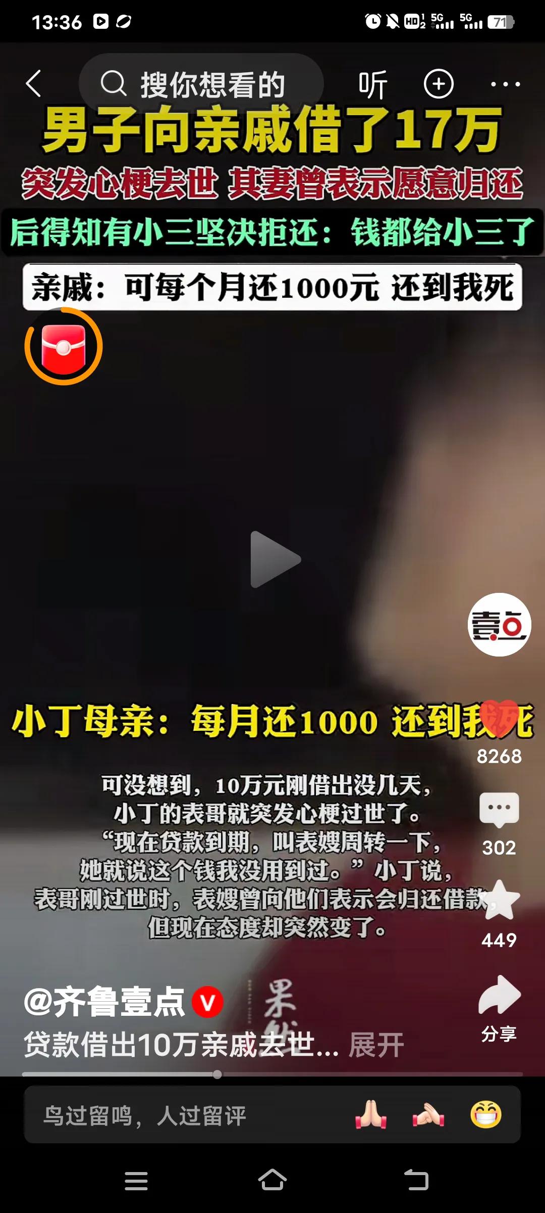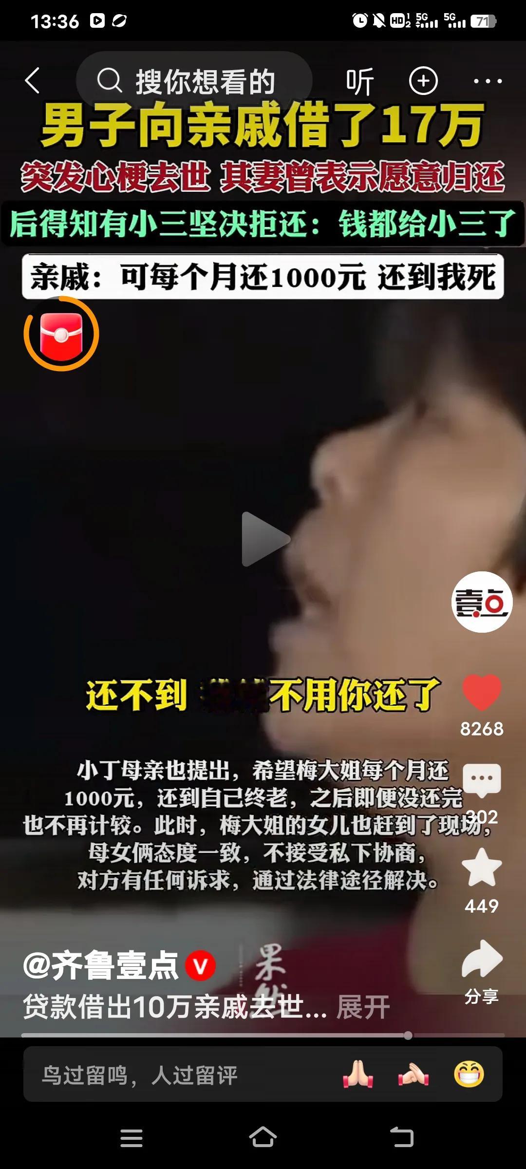 这事儿真让人无奈。一名男子向亲戚借了17万块钱,谁能料到意外降临,他突然病故。 男子刚过世时,表嫂还表示会归还借款。然而周梅大姐却向记者称,老公生前出轨,这笔钱不该还,还说自己根本没见到这17万。17万可不是一笔小数目,据小丁讲述,从2022年起的三年里,表哥陆续从他这儿借走了17万。其中5万是为给女儿过生日借的,另外10万是表哥之前包矿石亏掉的,甚至小丁的父亲还贷款借钱给表哥,如今贷款已经到期,可表哥却突发脑梗离世。表嫂的做法实在是让人心寒。 考虑到两家关系不错,小丁不想闹上法庭。小丁的母亲也提出,让周梅大姐每月还1000块,还到自己终老,还不完就算了。但如今表嫂周梅大姐态度转变,拒绝还钱,她女儿也来到现场,母女俩不接受协调,称对方若有任何诉求,可通过法律途径解决。 这着实是个难题,家人出轨与债主并无关联。即便走法律途径又能怎样呢?除非把小三告上法庭,否则这钱还真不好要回来。看来钱真不能随便外借,有网友说,以后借钱得当着人家媳妇的面,免得惹来不必要的麻烦!亲戚借钱纠纷 老家亲戚借钱