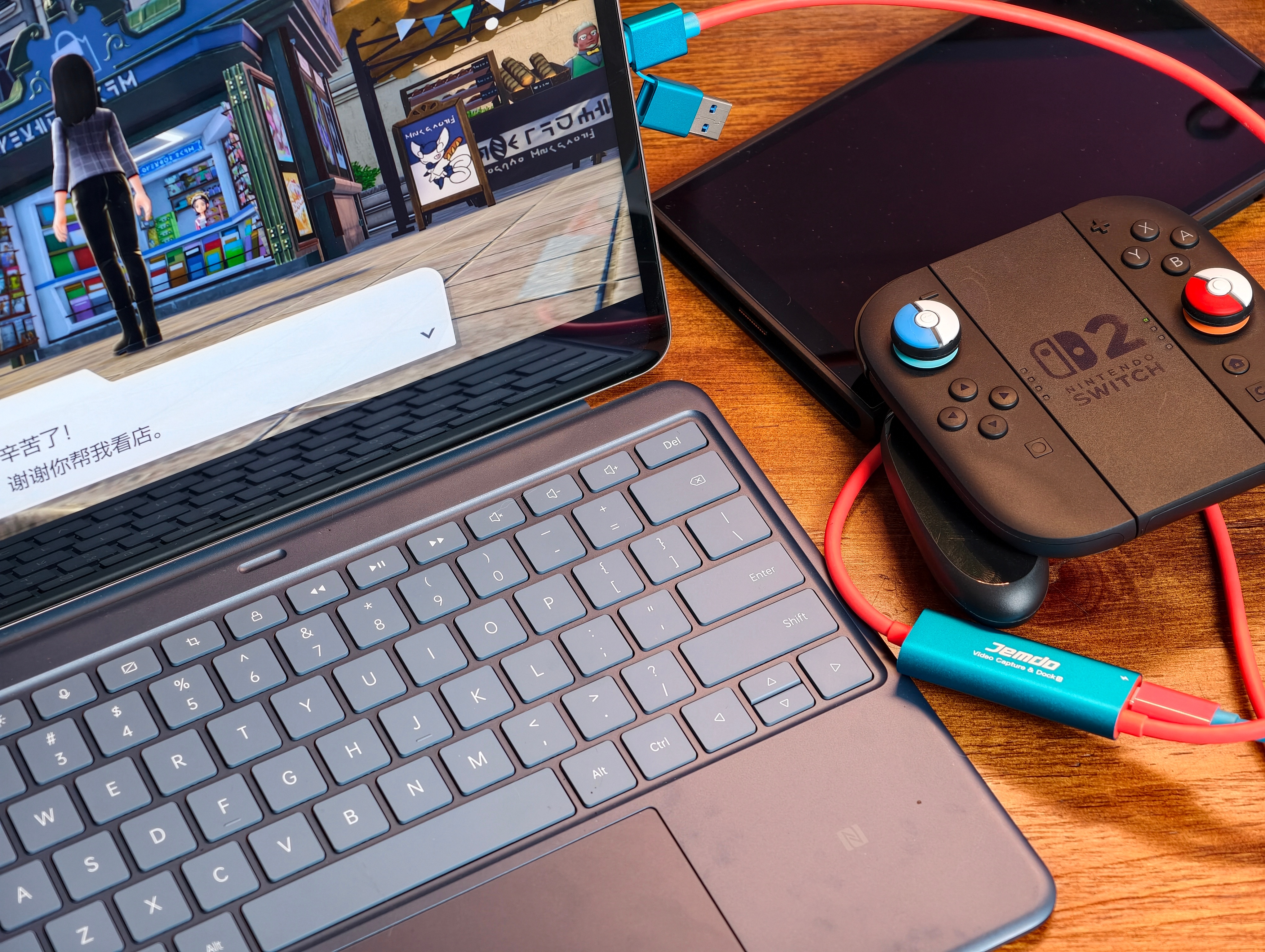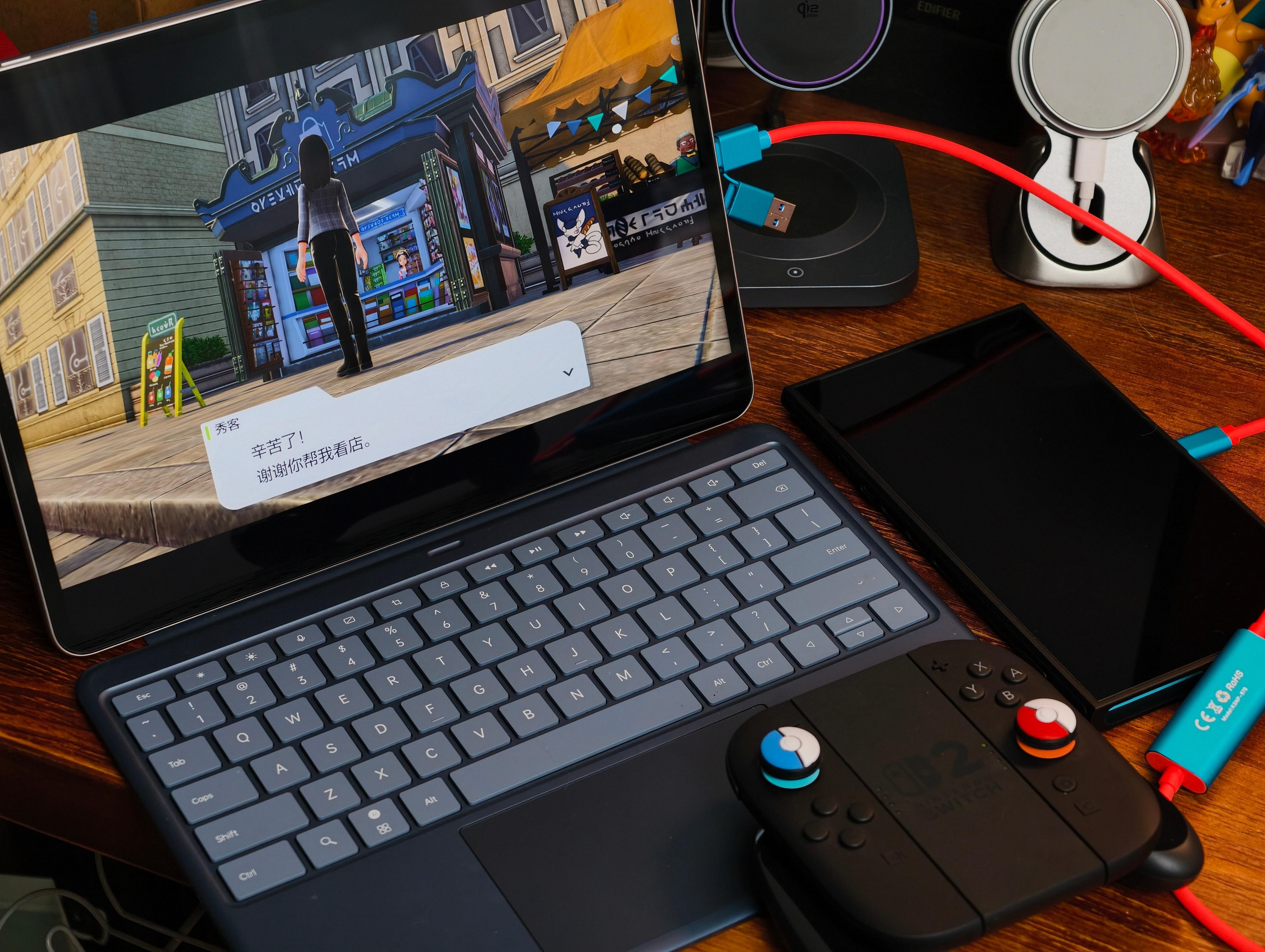 最近在用两套我个人很满意的Switch配件,解决了我办公桌没有位置放Switch2底座的困扰,都是锦读的配件(本条非广,纯分享);一个是投屏采集二合一的线,直连Switch2就可以投屏到平板或者笔记本电脑屏幕上玩游戏,不需要再单独买什么采集卡了,这个配件方案比较适合经常外出办公的人,我连安卓平板试了一下,1080P 60帧是综合体验最佳的分辨率设置,很流畅;第二个是快充+扩展+投屏一步到位的充电头数据线套装,这个套装最最适合我这种喜欢宅家里打游戏的人,一个65W的氮化镓充电头既可以给Switch供电,又自带HDMI插口,直连显示器都不需要NS2的官方底座省了一部分桌面空间,甚至还留了扩展口给你连鼠标用,也可以用来笔记本电脑投屏大显示器或者大投影仪,这套配件太强了,我现在显示器同时连接Mac mini和Switch2,自由切换信号源,办公摸鱼同时兼备,太爽了