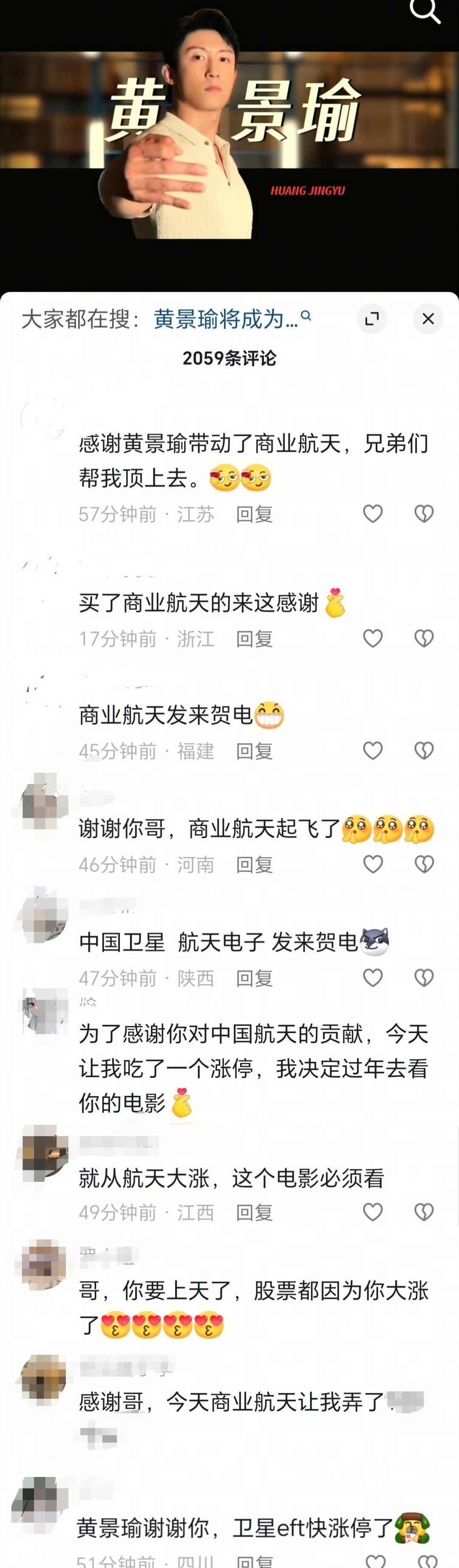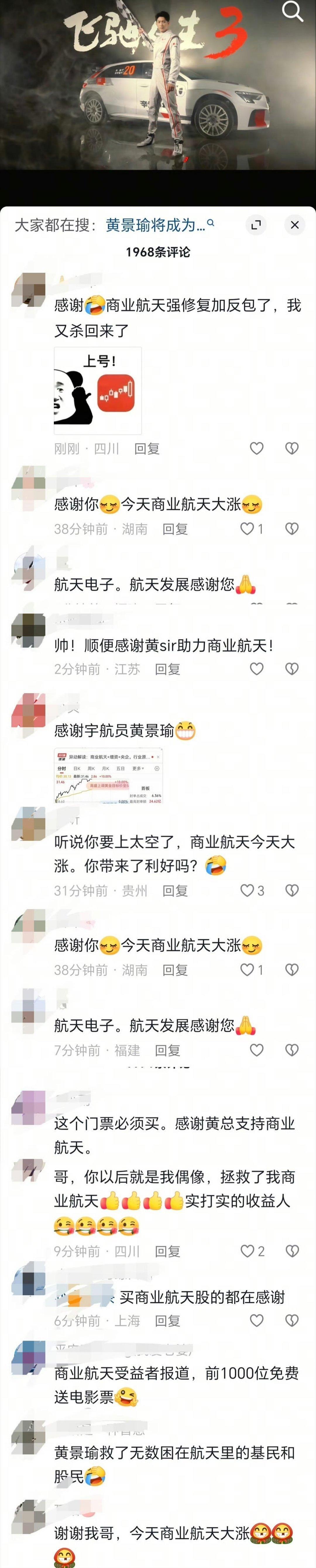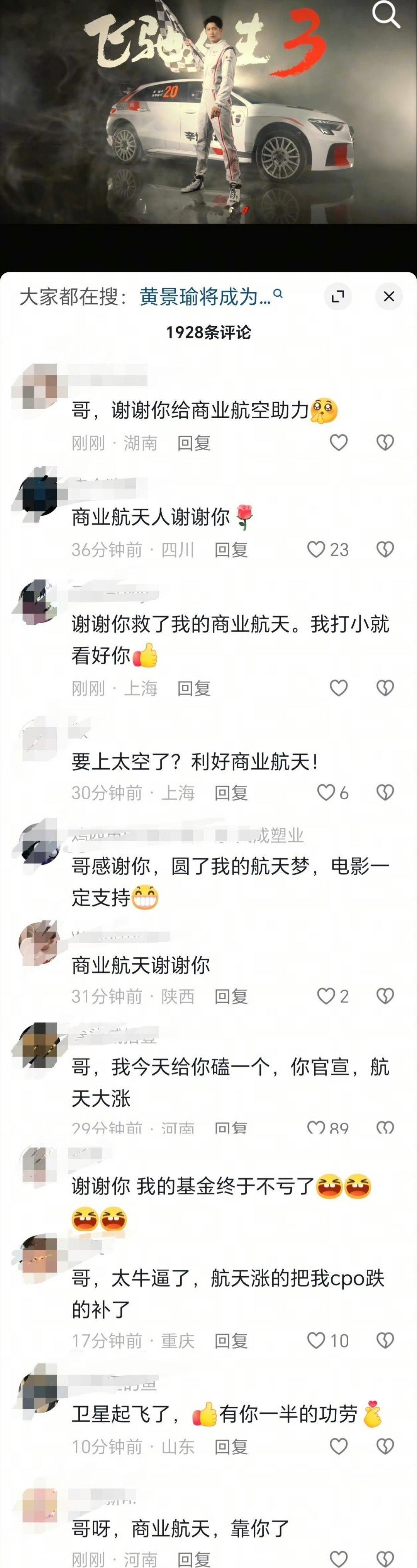 现在就出发3综艺大爆 黄sir热梗出圈无数罚罪2破万开门红 低营销低宣发口碑破圈黄景瑜牛逼要上天 带动航天板块股票大涨飞驰人生3定档大年初一 白月光归来杀你个片甲不留粉黄景瑜还是有点过于爽了 朋友们黄景瑜已经不满足只在内娱当兵了黄景瑜飞驰人生3飞驰人生3全员ok已就位 黄景瑜要上太空了