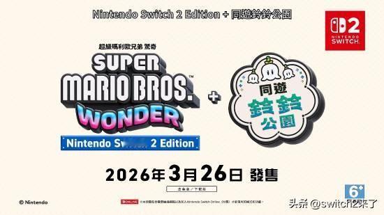 任天堂正式宣布《超级马里奥兄弟:惊奇》Switch 2版本将于2026年3月26日正式推出,同时还有该版本专属的全新多人玩法及内容“同游铃铃公园”,此外还将加入全新角色“罗洁塔公主”。 截至发稿,任天堂官方尚未公布本作的港服商品页面,但据Insider Gaming报道,初代Switch玩家可通过19.99美元(折合人民币约139.22元)的升级包购买该版本。如果爆料是真的话,那可以说这次升级应该是创了新高了!