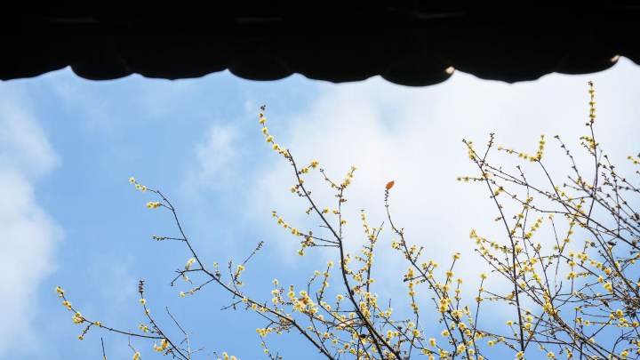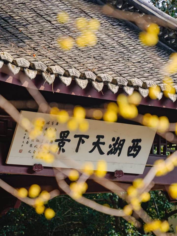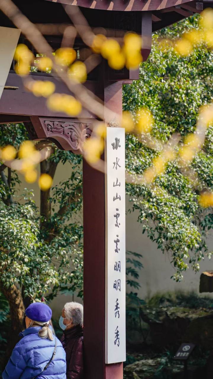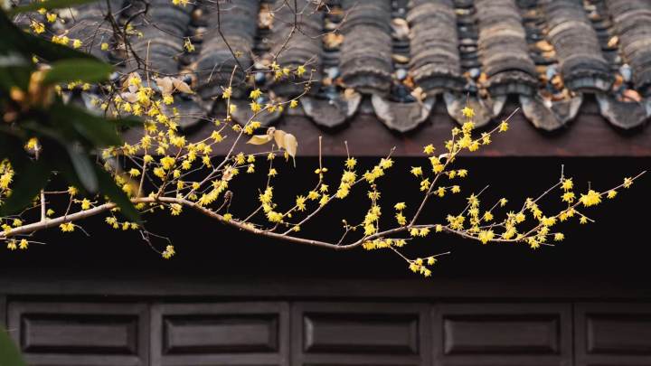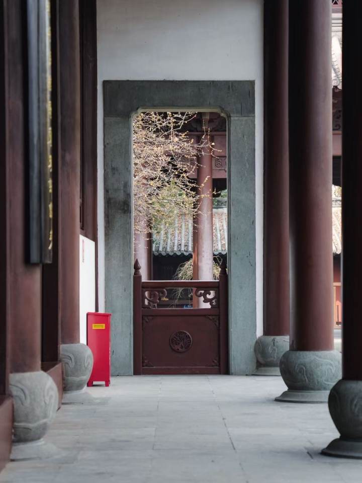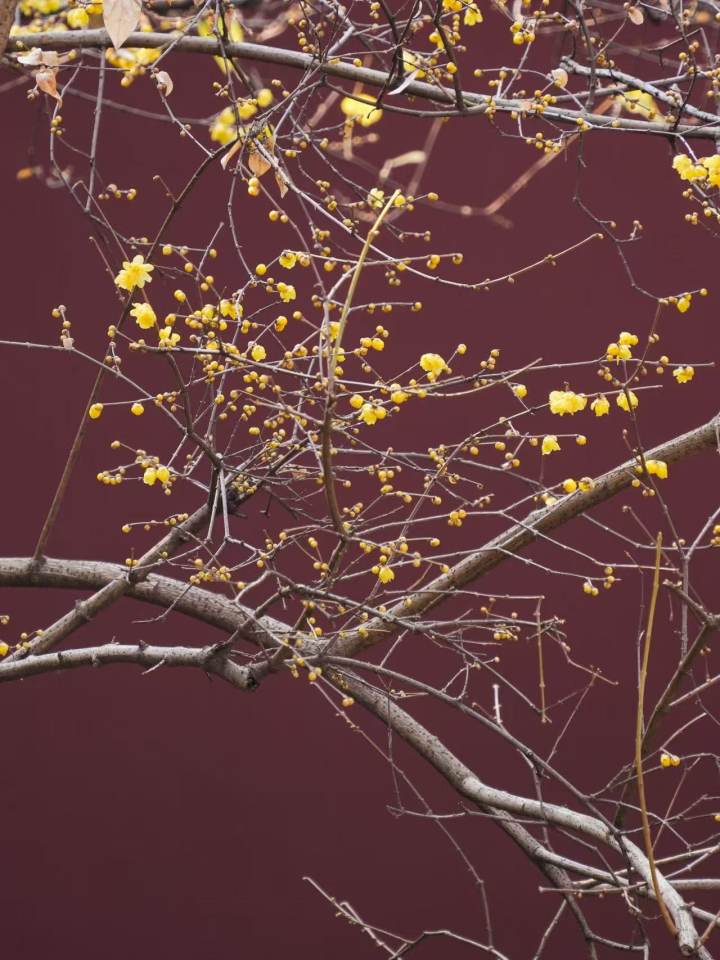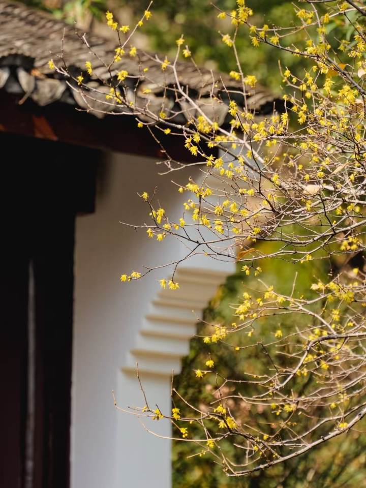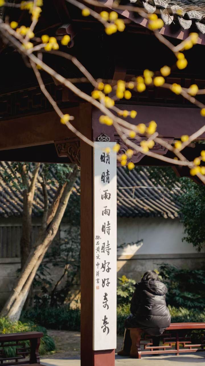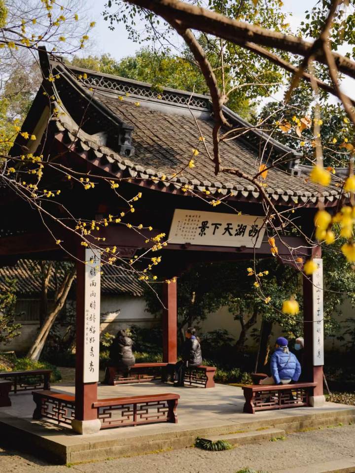这里原是纪念吴越钱王的家庙,红墙黛瓦间,蜡梅的鹅黄显得格外明媚。