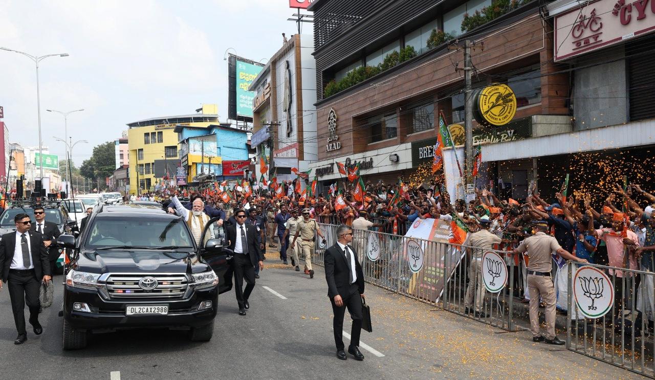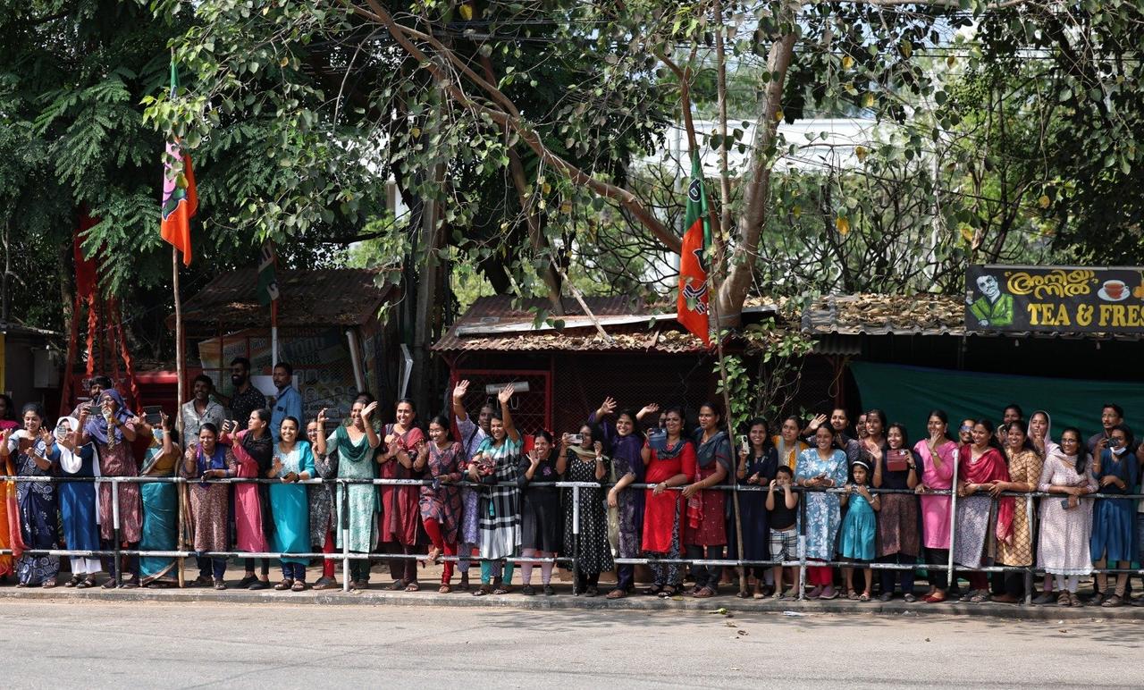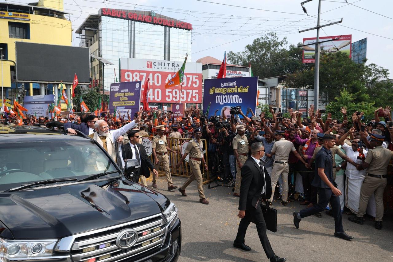 莫迪又出门参加活动了! 1月23日,印度总理在社交媒体上发布高兴的发布消息,自己抵达印度南部城市喀拉拉邦首都特里凡得琅,参加印度人民当的选举活动,受到当地人民的热烈欢迎。莫迪坐在丰田车队的头车里,并站起来将半个身子漏在车外,扶着车门开心的和围观的人群挥手打招呼,两边穿黑西装戴墨镜的安保人员非常有型,这出场方式和电影里的大佬出场有一拼。不知是印度治安环境真的太差,还是莫迪格外重视自己的人身安全,每次出门都是警察、保镖、军队安保措施叠加,确保安全不出任何纰漏。