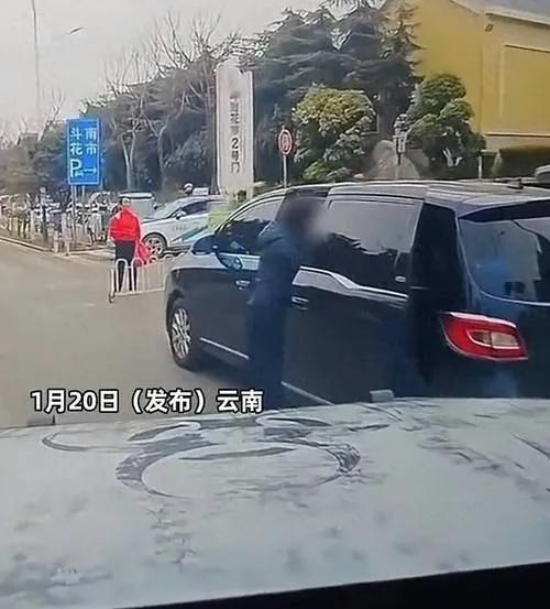 昆明斗南花市附近停车场出入口,1月6日下午发生的女子停车挡路被后车撞上的事,目前