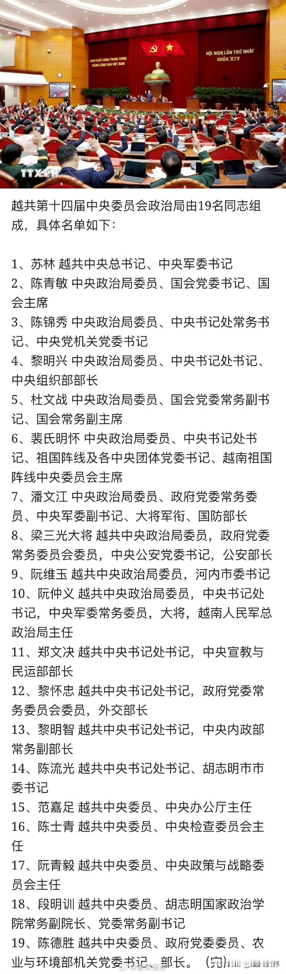 越南政坛大洗牌!“五驾马车”迎来调整,将驶入新轨道。技术型官员与新生代同台共舞,