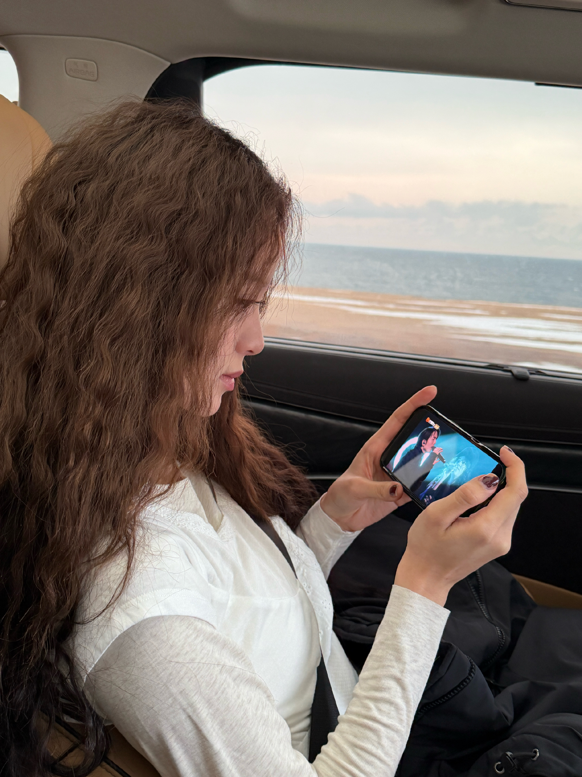 欧阳娜娜 老自看老己谁懂啊!欧阳娜娜居然在车里看自己的舞台!羊毛卷造型软乎乎的,完全是真人芭比!看着视频里的自己,偷偷开心的样子也太可爱了!