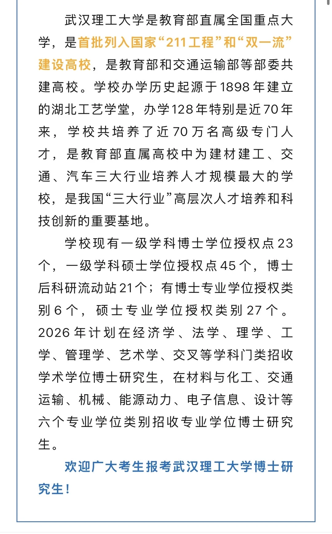 2026年武汉理工大学博士开启!今日